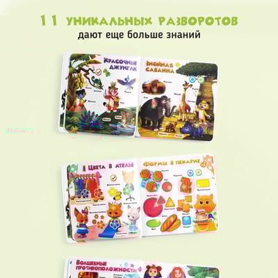 Говорящая интерактивная книга «Учимся с мультяшками». Самая первая энциклопедия для малышей. Очень компактная: удобно брать с собой. Нажимай пальчиком на страницы и картинки оживут!