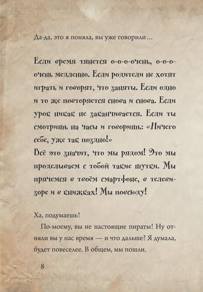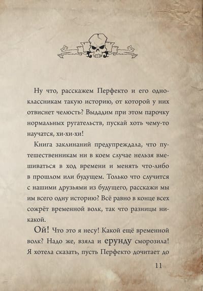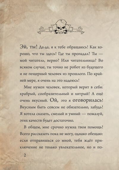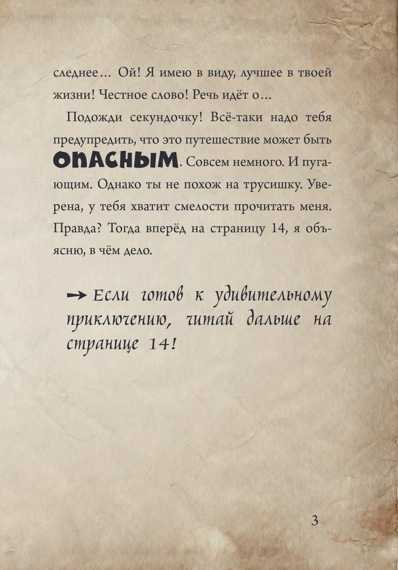 Маленькая злая книга приготовила для тебя новый сюрприз! На этот раз дело не ограничится жуткими историями и сложными головоломками, ведь теперь она собирается ПУТЕШЕСТВОВАТЬ ВО ВРЕМЕНИ! Да-да, она утверждает, что с помощью волшебства сможет перенести кого угодно в доисторическую эпоху и в далёкое будущее! Правда, для этого ей понадобится умный, смелый и вкусный читатель – то есть ты! Если ты не боишься заблудиться в веках, повстречать пиратов времени и огромных динозавров, а также готов заглянуть в двадцать второй век, то поторопись! Маленькая злая книга уже ждёт тебя!