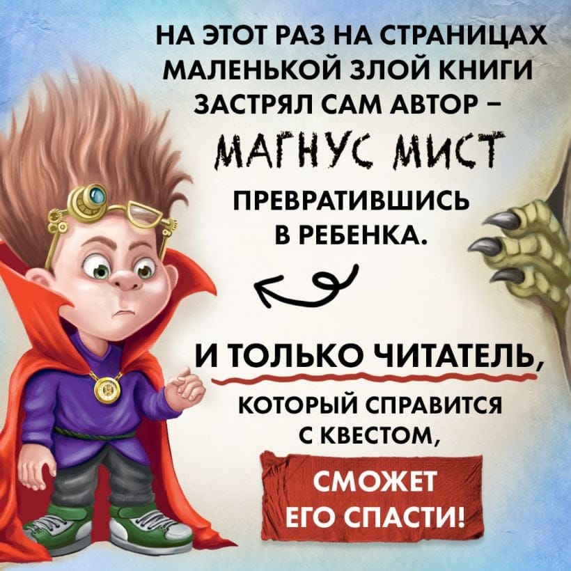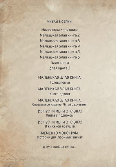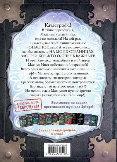 «Маленькая злая книга» снова с тобой. И ей срочно нужна помощь читателей! Обещаем, что если в тебе нет ни капли магии, с тобой ничего не случится. Но если ты чувствуешь дремлющие волшебные силы, то это будет самое опасн... Нет, самое весёлое приключение в твоей жизни. (Только потом не говори, что мы тебя не предупреждали!) Как насчёт того, чтобы побывать в лаборатории писателя, одолеть тролльчиху, найти воздушный замок и заколдовать дракона? Тогда всех смельчаков мы приглашаем открыть первую страницу «Маленькой злой книги».
