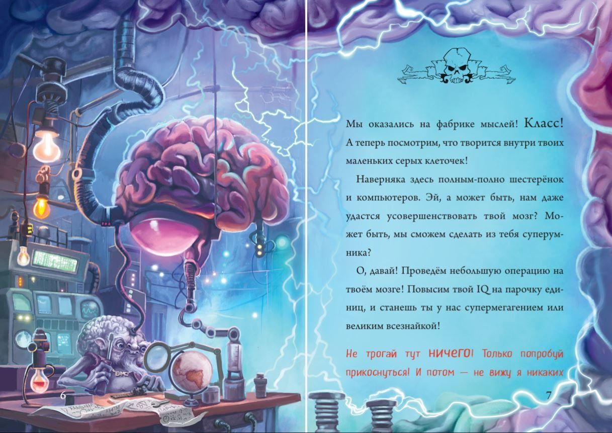 Секрет успеха серии в том, что книга ведёт живой, юмористический диалог с читателем, рассказывает ему страшные истории и приглашает в авантюрное приключение. Чтобы пройти всю книгу до конца (принимая решения на сюжетных развилках и переходя по разным страницам не по порядку), нужно разгадать немало загадок и головоломок, которые развивают внимание и мышление. В этот раз злюка решила проверить, сможет ли она с помощью заклинания проникать в мозг других людей и читать их мысли... Чем закончится этот эксперимент?