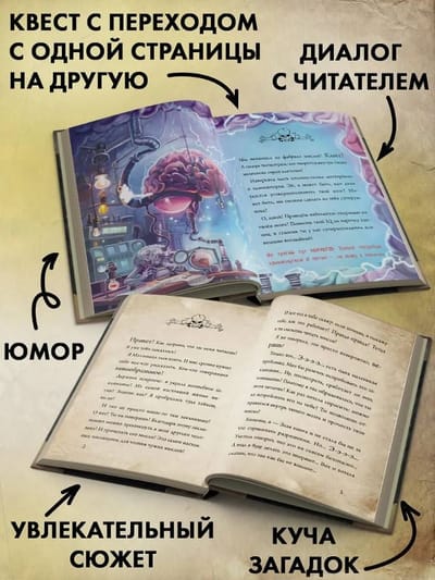Книга-игра содержит множество атмосферных цветных иллюстраций и красивые шрифты и понравится детям 7—11 лет. Тома серии можно читать в любой последовательности. Ещё выпущены специальные издания «Читай с друзьями», «Головоломки» и «Адвент», а также подсерия для подростков 11—13 лет «Злая книга».