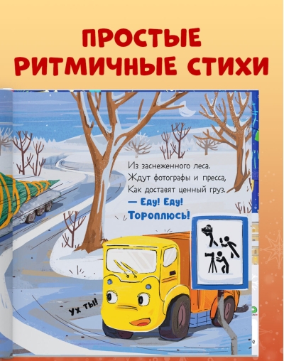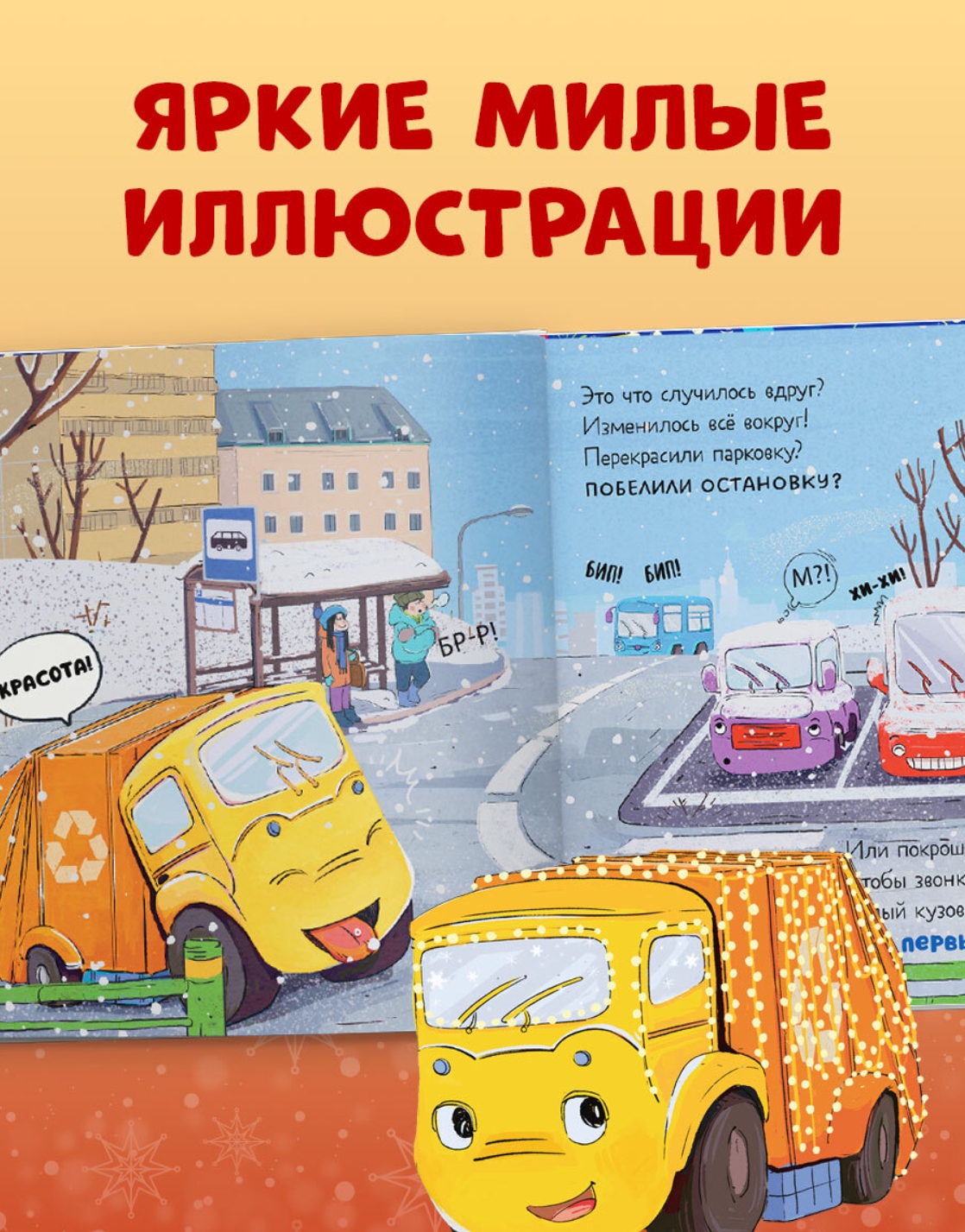 Веселая, добрая и красивая книга о зимних приключениях маленького мусоровоза и подготовке к празднику для тех, кто любит снег, машины и считает дни до Нового года!