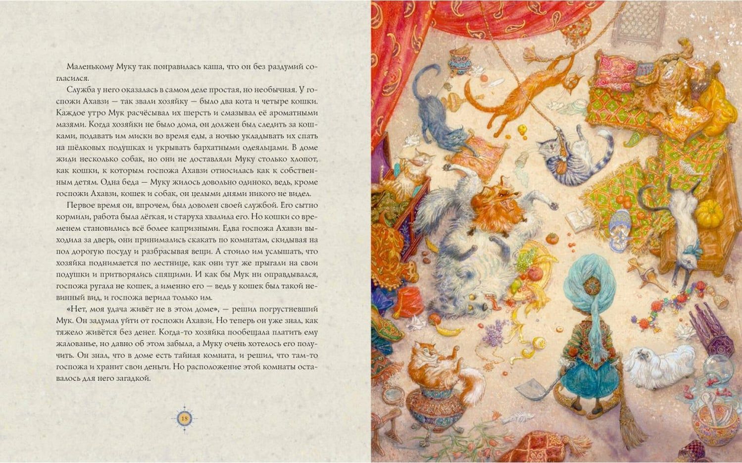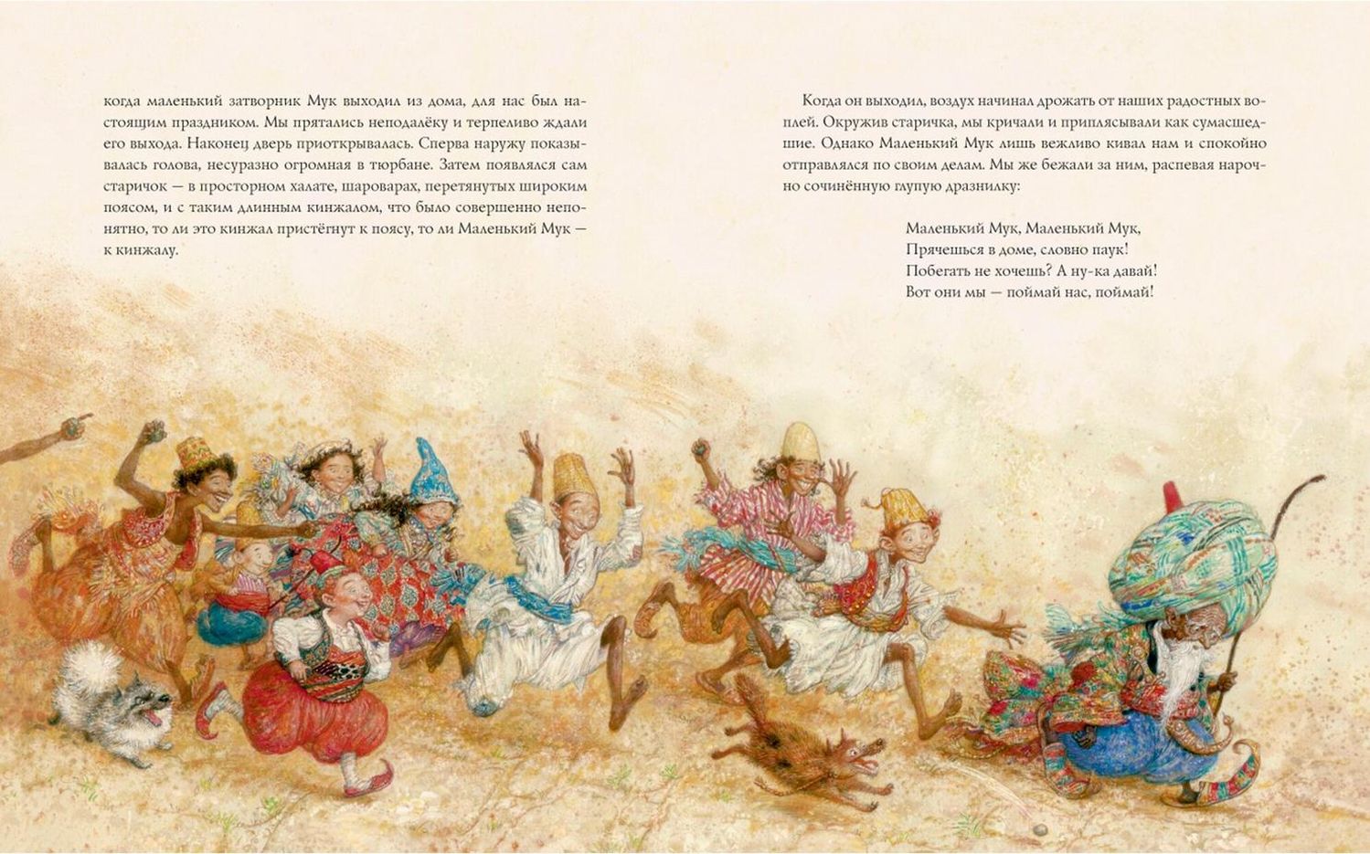 «Маленький Мук» — известнейшая сказка немецкого писателя Вильгельма Гауфа и одна из самых любимых сказок детей всего мира на протяжении двух последних столетий. В ней рассказана история человека по прозвищу Маленький Мук, на долю которого выпали как горести, так и самые необыкновенные приключения. Ещё ребёнком изгнанный родственниками из собственного дома, он кажется обречённым на нищету и гибель, но череда неожиданных и волшебных событий поможет маленькому путнику не только выжить, но и сделает его богатым. И, как бывает в волшебных сказках, злодеи будут посрамлены и наказаны, независимо от их силы и положения, а доброе сердце простодушного путника найдёт утешение и награду. Волшебные иллюстрации, переносящие вас в чарующий мир сказочного Востока, для этой книги нарисовал известный петербургский художник Антон Ломаев.