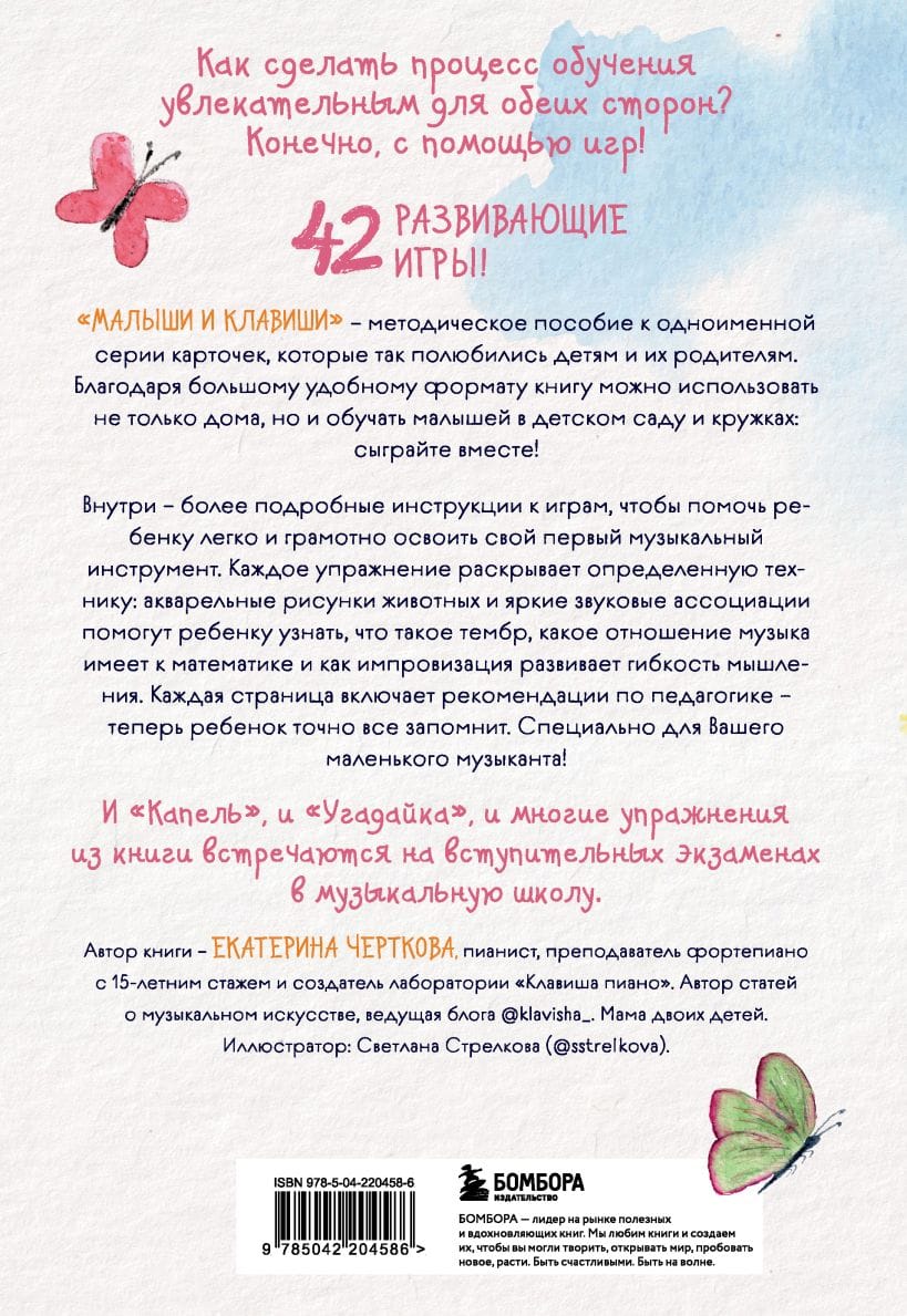 Автор книги Екатерина Черткова не понаслышке знает, как можно укрепить эмоциональную связь с ребенком, при этом научив его полезным вещам — дважды мама и вот уже 15 лет преподаватель фортепиано, она открыла лабораторию «Клавиша пиано», чтобы разрушить стереотип об обучении музыке.
