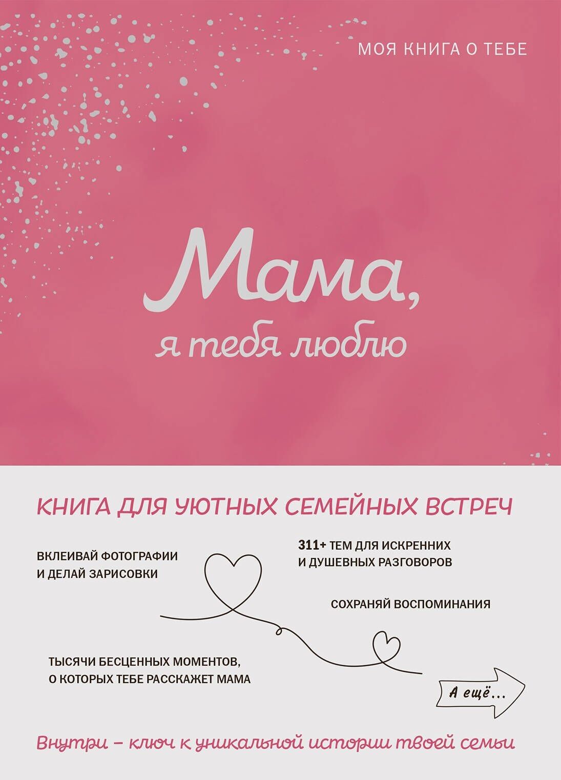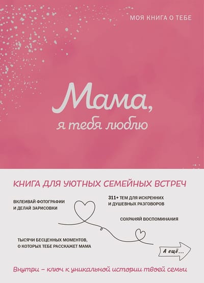 Книга «Мама, я тебя люблю!» — это не только идеальный подарок для близкого человека на Новый год, день рождения, 8 марта или день матери, но и ваш проводник в мир психологии и саморазвития, ведь узнавая свои корни, мы узнаем и настоящих себя, а значит, вы сможете разобраться и в вопросах к себе, которые у всех нас возникают в течение жизни. Издание подойдет и тем, кто ищет семейный фотоальбом необычного формата, и понравится вам, если вы обращали внимание на бестселлеры «С тобой я дома», «К себе нежно».
