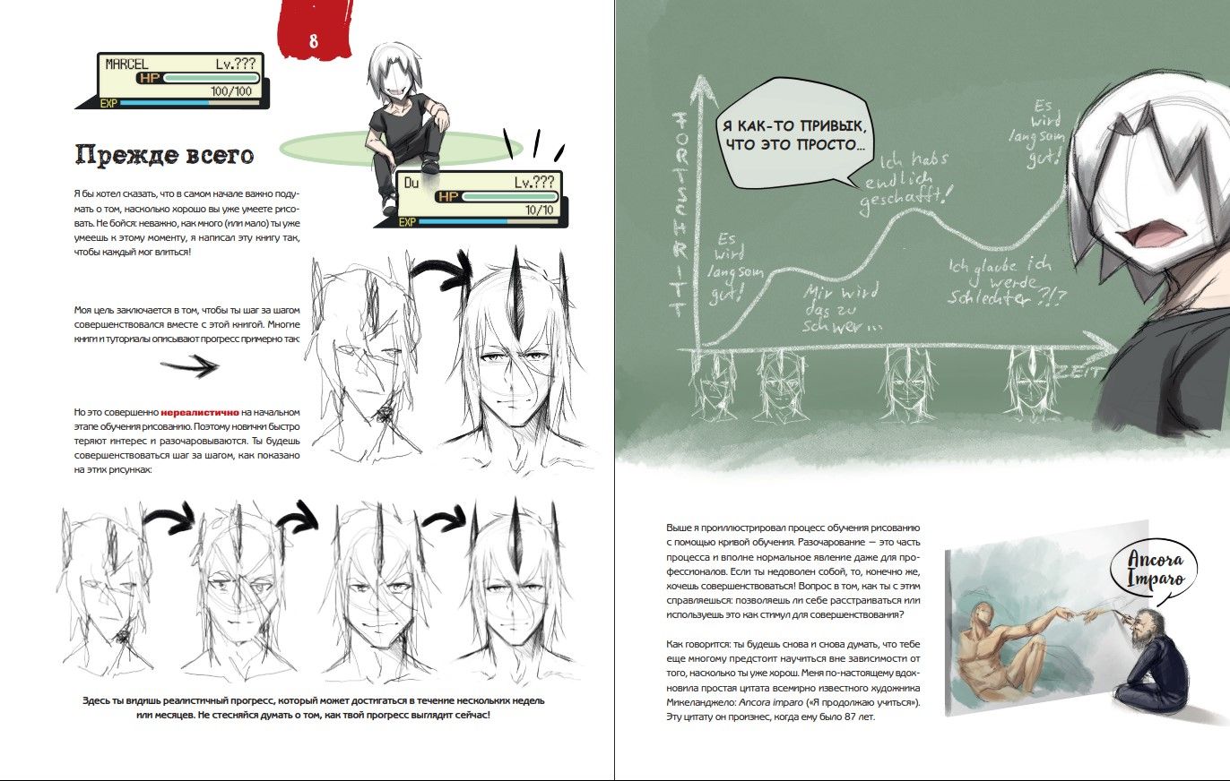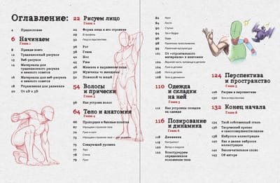 Постепенно ты откроешь для себя секреты создания оригинальных и запоминающихся сюжетов, научишься выстраивать динамичные позы и подбирать удачные ракурсы, а также работать с анатомией. Внутри ты найдешь более 40 мастер-классов по рисованию отдельных частей лица и туловища героев: глаза, волосы, руки, ноги, бюст и многое другое!