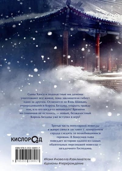 Зло наступает на цветущие земли империи Чуньцзе, заражая их темной ци, а сыны Хаоса готовы вырваться из магических оков и уничтожить всех людей. Вэнь Шаньяо отправляется на запад, в клан Бэйай, где свирепствуют демоны, но он не знает, с кем — и с чем — ему придется там столкнуться. На кону гораздо больше, чем его жизнь, а от решений бывшего Короля Бездны теперь зависит само существование мира…Третья часть популярной новеллы в жанре сянься заставит читателей поволноваться за полюбившихся героев, ведь автор не собирается играть с ними в поддавки. А бонусная глава «Лисья маска» поведает историю одного из самых обаятельных персонажей новеллы — загадочного Господина.