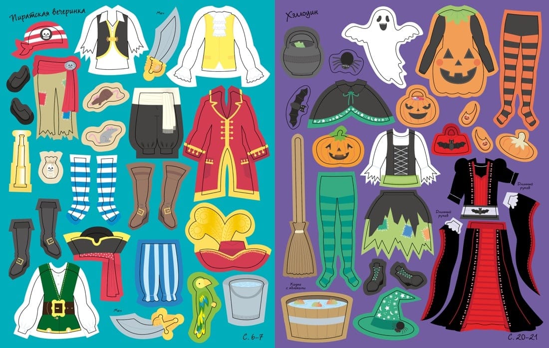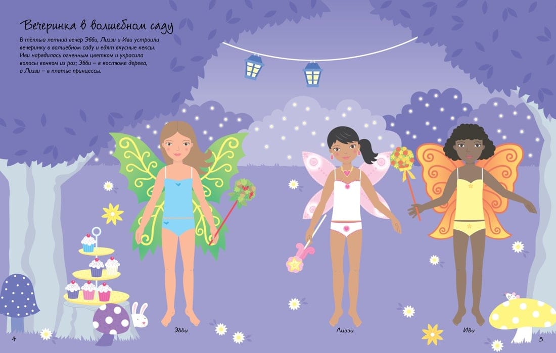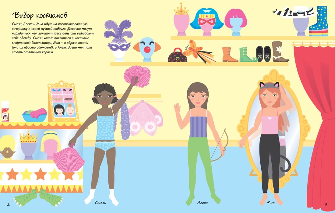 Все девочки любят маскарады и весёлые вечеринки. А ещё они обожают красивые платья и карнавальные костюмы. Наряди девочек с помощью ярких наклеек!