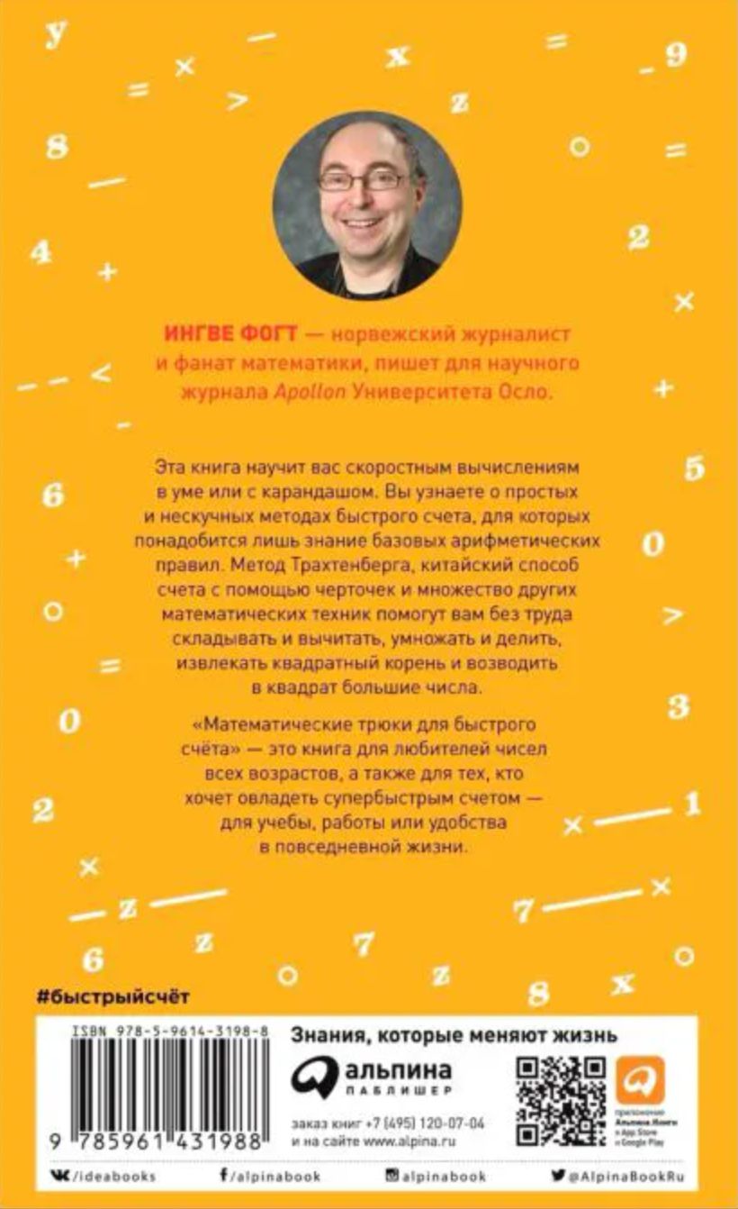 Забудьте о калькуляторе, эта книга научит вас скоростным вычислениям в уме или с карандашом. Чтобы считать быстрее, достаточно думать немного иначе, уверен ее автор Ингве Фогт — норвежский журналист научного журнала Apollon и фанат математики.