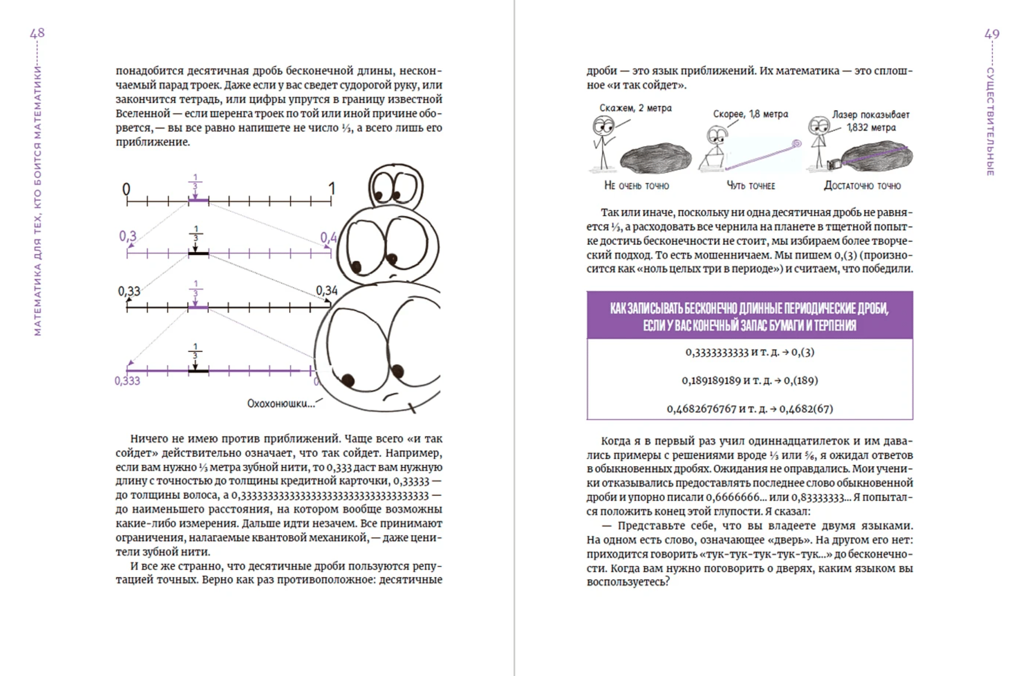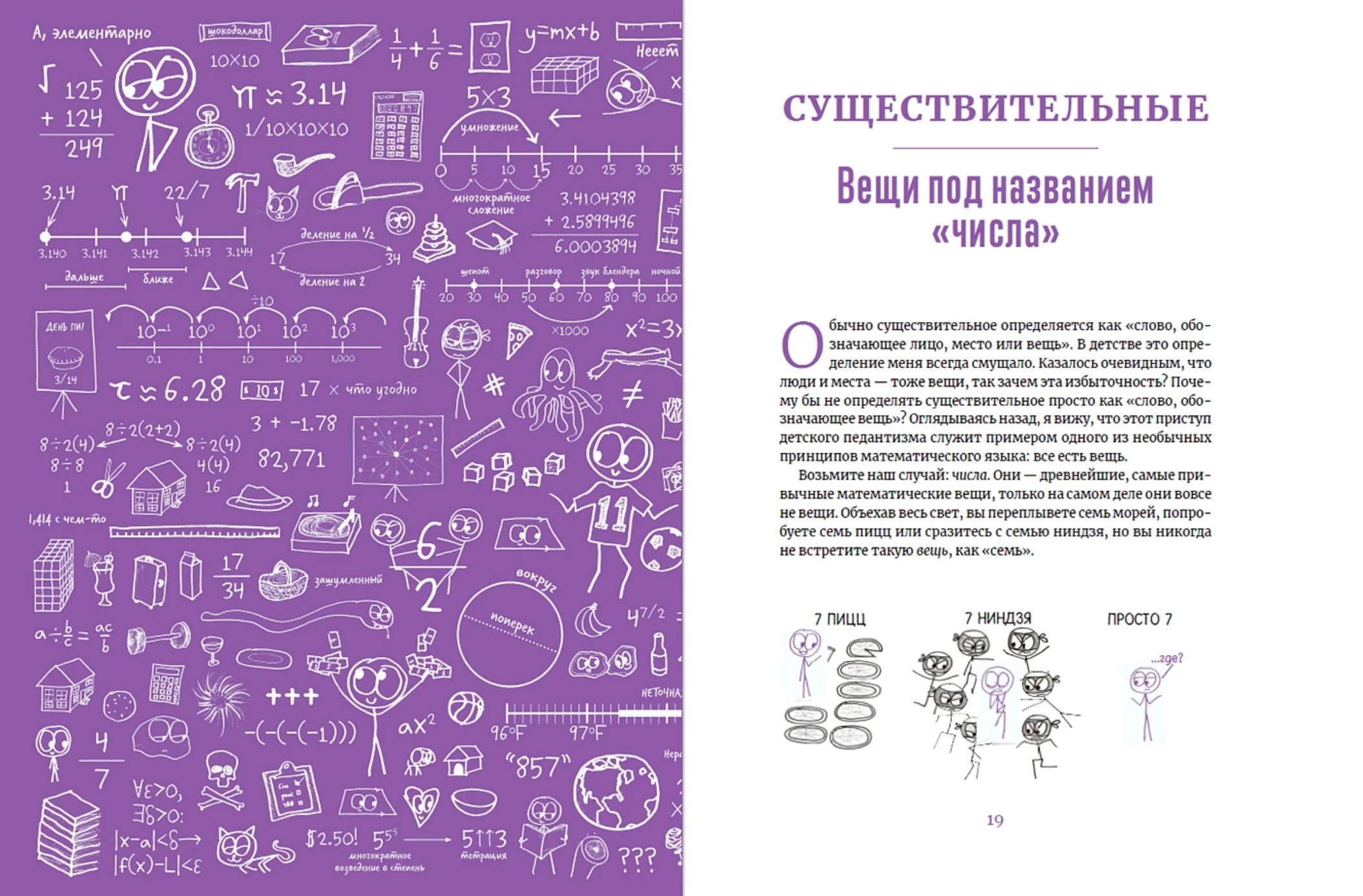 Попутно Орлин делится с читателями историями о собственных математических провалах и прозрениях, а также о трудностях и триумфах своих учеников. Самое главное: с помощью своих неумелых — но на удивление эффективных — рисунков он проливает свет на довольно глубокие и очень разные вопросы. Что именно представляет собой школьная математика? Почему стольким из нас так трудно извлечь из нее что-то путное? Может ли перетасовка символов научить нас чему-то новому о реальности? И наконец, как вообще работает математика?