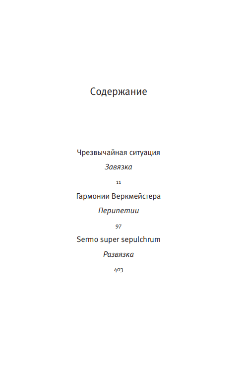 Странный цирк, гвоздь программы которого — чучело исполинского кита, прибывает в маленький городок. С этого момента хаос врывается в жизнь обывателей и одно за другим происходят мистические события, дающие повод для размышлений о «вечных вопросах» большой литературы: о природе добра и зла, о бунте и покорности, о невозможности гармонии в мире и принципиальной таинственности основ бытия.