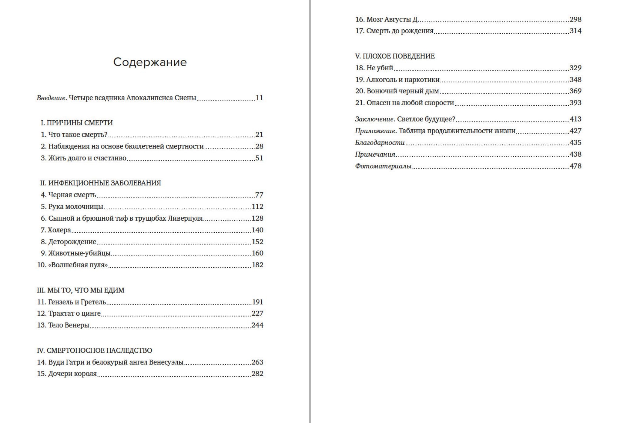 Это книга на неоднозначную тему — о том, какие риски сопровождали человеческую жизнь на протяжении веков и как люди учились избегать их в своем естественном стремлении к долголетию. Если всего лишь 100 лет назад люди умирали в первую очередь от инфекционных заболеваний, то сегодня основными причинами смерти в промышленно развитых странах стали болезни сердца, инсульт и рак. Изучая подобную статистику, мы можем понять, как жили предыдущие поколения, учиться на их ошибках, заимствовать лучшее и создавать новое.