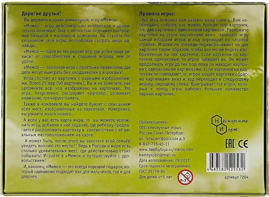 Вы держите в руках уникальную игру "Мемо".