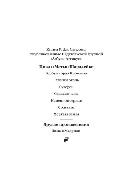 В мире литературных героев и в сознании сегодняшнего читателя образ Мэтью Шардлейка занимает почетное место в ряду с такими известными персонажами, как Шерлок Холмс, Эркюль Пуаро, Ниро Вулф и комиссар Мегрэ.
