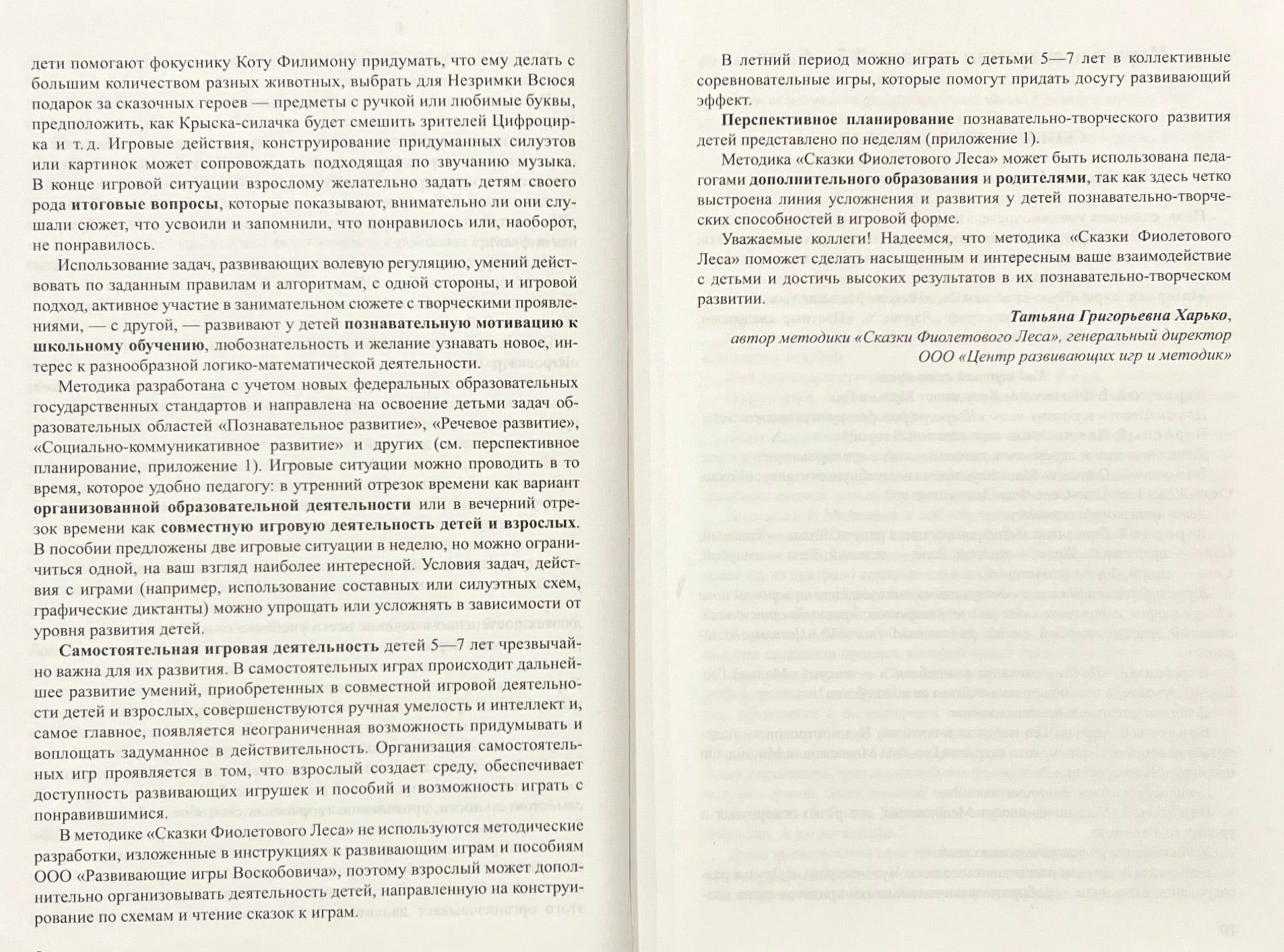 Методика Харько Т.Г. «Сказки фиолетового леса» для детей 5-7 лет - старшего дошкольного возраста - разработана на основе проблемно-игрового подхода В.В. Воскобовича с учетом актуальных требований ФГОС к организации образовательной деятельности и представляет собой систему игровых ситуаций с постепенно усложняющимся сюжетом и содержанием игровых задач.