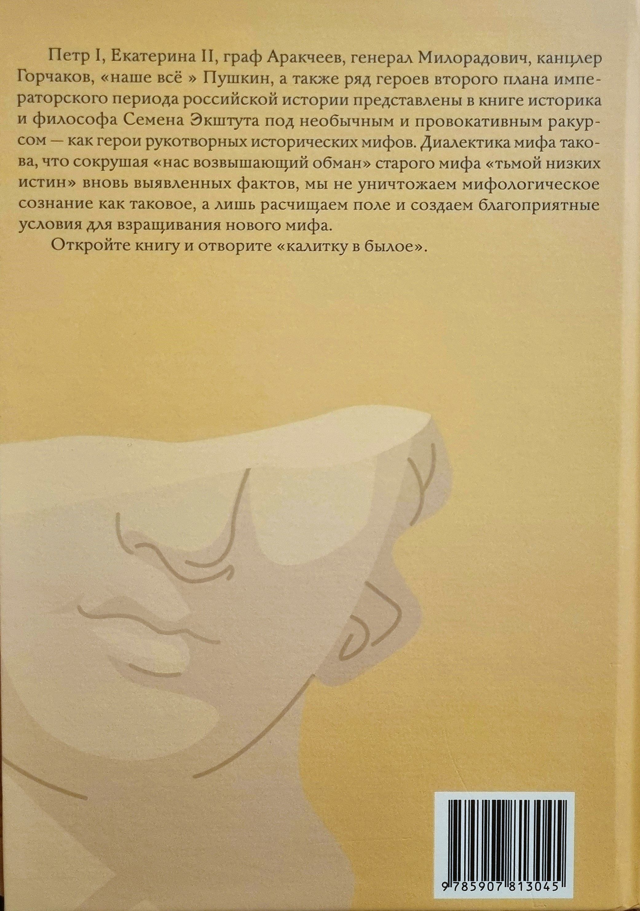 В своей новой книге историк и философ Семён Экштут под необычным, зачастую провокационным ракурсом, рассматривает соотношение Истории и Мифа. Петр I и Екатерина I, граф Аракчеев и генерал Милорадович, Пушкин и Вяземский, генерал Орлов и канцлер Горчаков, все они, а также герои второго плана предстают на страницах книги через факты и вымыслы разных времен.