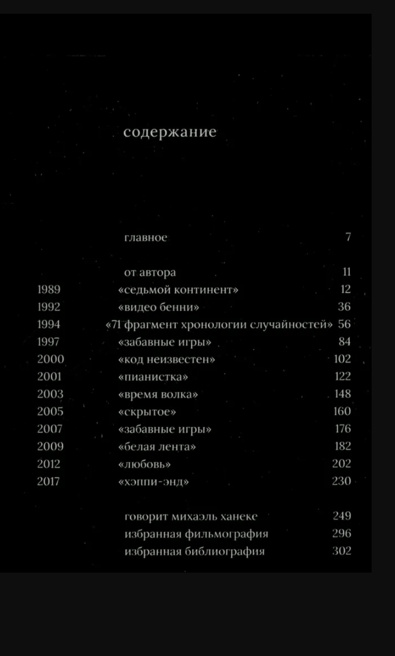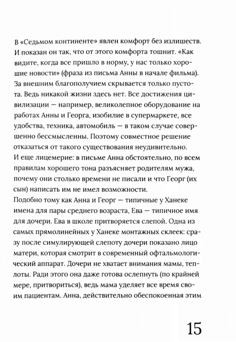 Михаэль Ханеке — ключевой автор современного европейского кино, повлиявший на множество режиссеров по обе стороны океана. Его фильмы ставят перед зрителями неудобные вопросы, не давая на них ответов. В своей книге Евгений Обухов последовательно анализирует каждую из двенадцати кинокартин Ханеке. В качестве приложения приводится интервью с режиссером, его избранная фильмография и библиография.