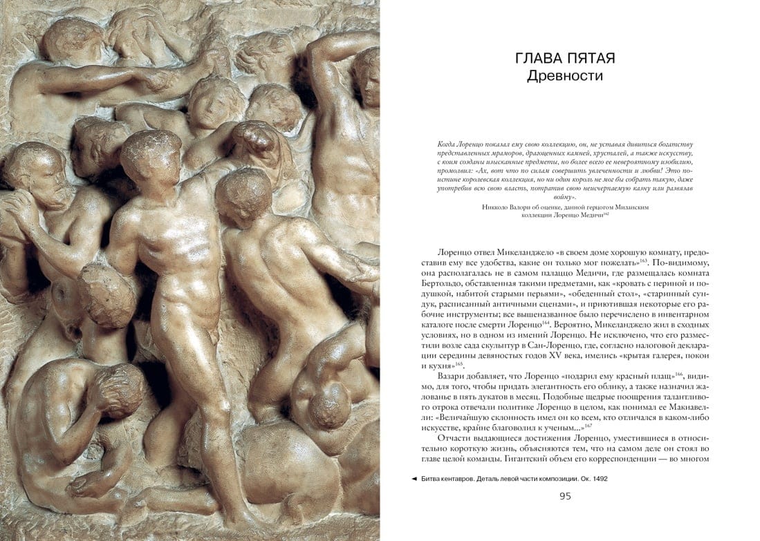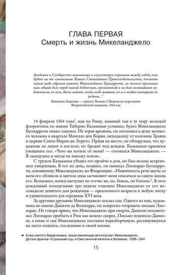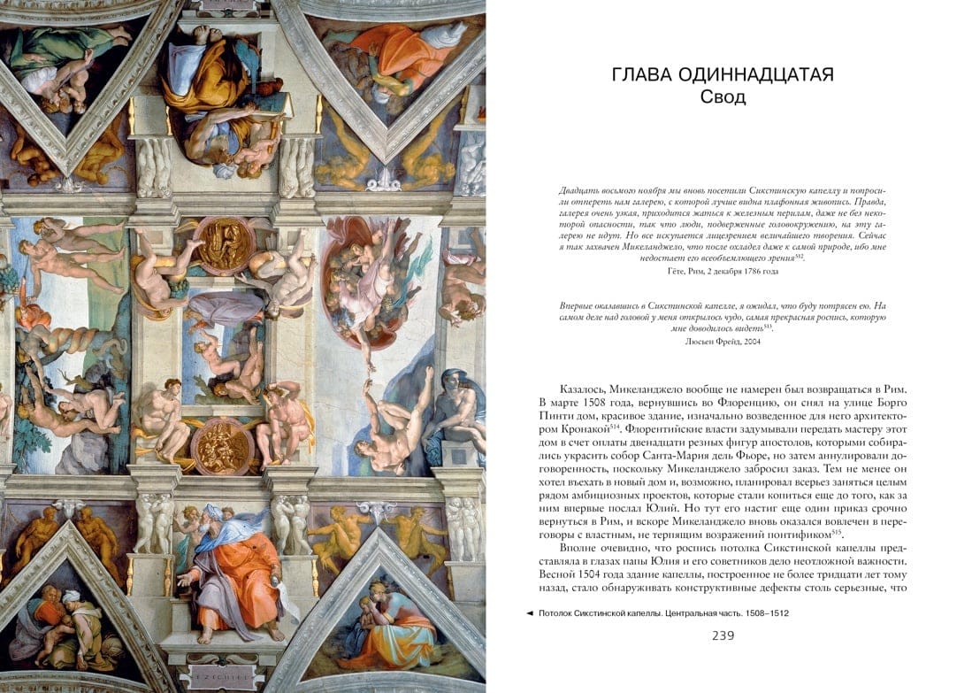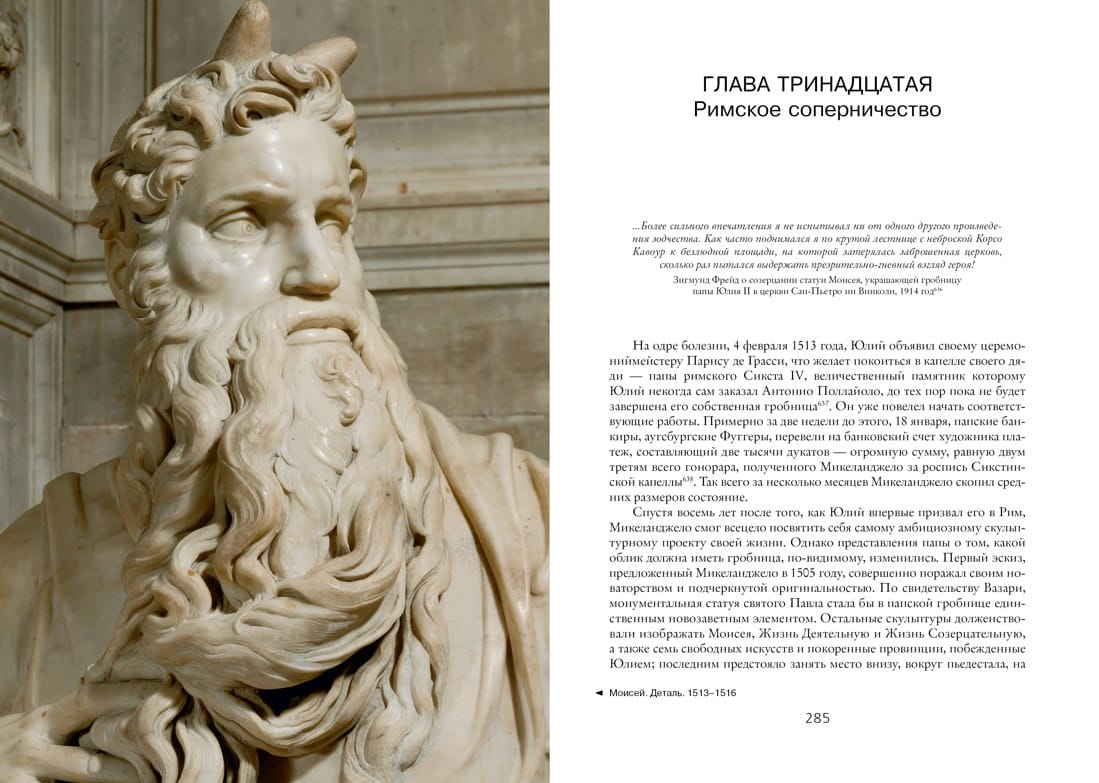 В тридцать один год Микеланджело считался лучшим художником Италии и, возможно, мира; задолго до его смерти в преклонном возрасте без малого девяноста лет почитатели называли его величайшим скульптором и художником, из когда-либо живших на свете. (А недоброжелатели, в которых тоже не было недостатка — высокомерным грубияном,  скрягой и мошенником). Десятилетие за десятилетием он трудился в эпицентре бурных событий, определявших лицо европейского мира и ход истории. Свершения Микеланджело грандиозны — достаточно вспомнить огромную площадь фресок Сикстинской капеллы или мраморного гиганта Давида. И все же осуществленное им на пределе человеческих сил — лишь малая толика его замыслов, масштаб которых был поистине более под стать демиургу, чем смертному…