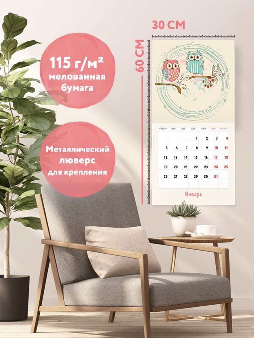 Милые совы. Календарь настенный на 2026 год
