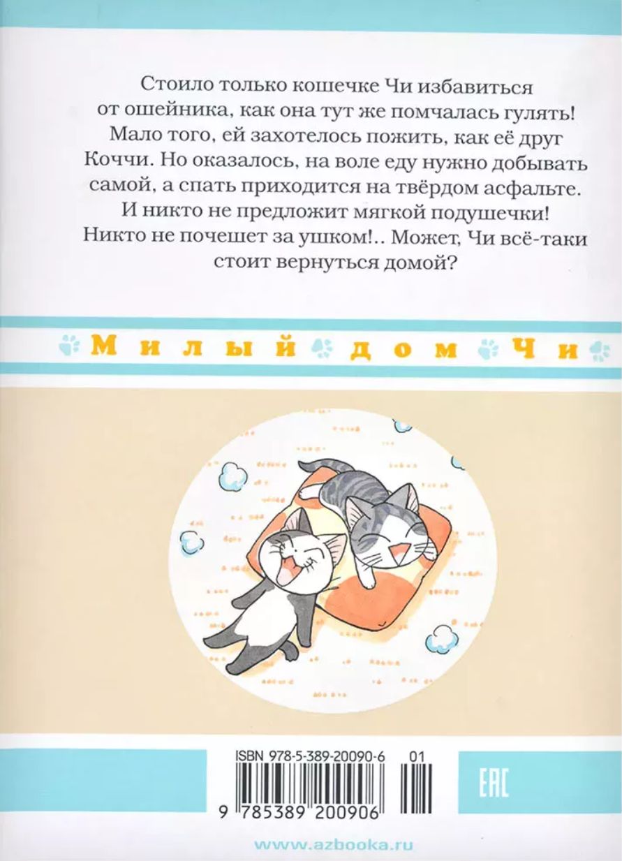 Стоило только кошечке Чи избавиться от ошейника, как она тут же помчалась гулять! Мало того, ей захотелось пожить, как ее друг Коччи. Но оказалось, на воле еду нужно добывать самой, а спать приходится на твёрдом асфальте. И никто не предложит мягкой подушечки! Никто не почешет за ушком!.. Может, Чи всё-таки стоит вернуться домой?