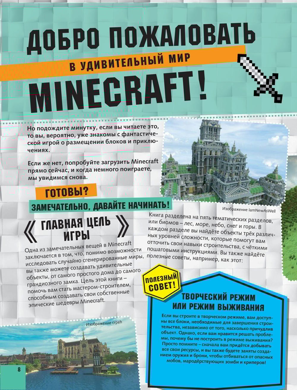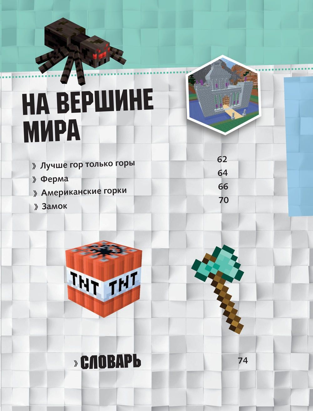 Книга «Minecraft. Полное руководство» из серии «Вселенная Minecraft» станет ценным подарком для любого поклонника этой игры. Книга разделена на пять тематических разделов – лес, море, небо, снег и горы. В каждом разделе найдутся объекты трёх различных уровней сложности, которые помогут читателю отточить свои навыки строительства, с чёткими пошаговыми инструкциями. Книга подарит возможность построить 15 невероятных сооружений и, разумеется, здорово повеселиться! Для среднего школьного возраста.
