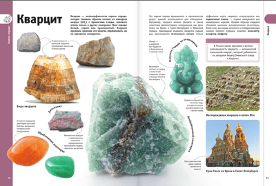 Эта увлекательная детская энциклопедия в картинках откроет для вас удивительный мир камней. В книге подробно описаны основные горные породы, которые включают в себя множество минералов. В коротких, но емких статьях представлены самые разные минералы, рассказано, как они используются в промышленности и технике, а также в ювелирном деле, когда искусные мастера превращают их в сверкающие драгоценности. В книге содержится информация не только о земных камнях, но и о небесных, прилетевших к нам из глубин космоса. Знакомит энциклопедия и с горными породами и минералами Марса — планеты, во многом похожей на Землю. Но главное — на страницах энциклопедии приведено множество ярких иллюстраций, которые дают читателю возможность в мельчайших подробностях рассмотреть минералы и драгоценные камни. Кроме того, книга содержит глоссарий и алфавитный указатель, которые помогут быстро найти сведения об интересующем минерале или объяснить незнакомое понятие. Познавать богатейший мир минералов вместе с этой энциклопедией интересно и радостно! Для среднего и старшего школьного возраста.