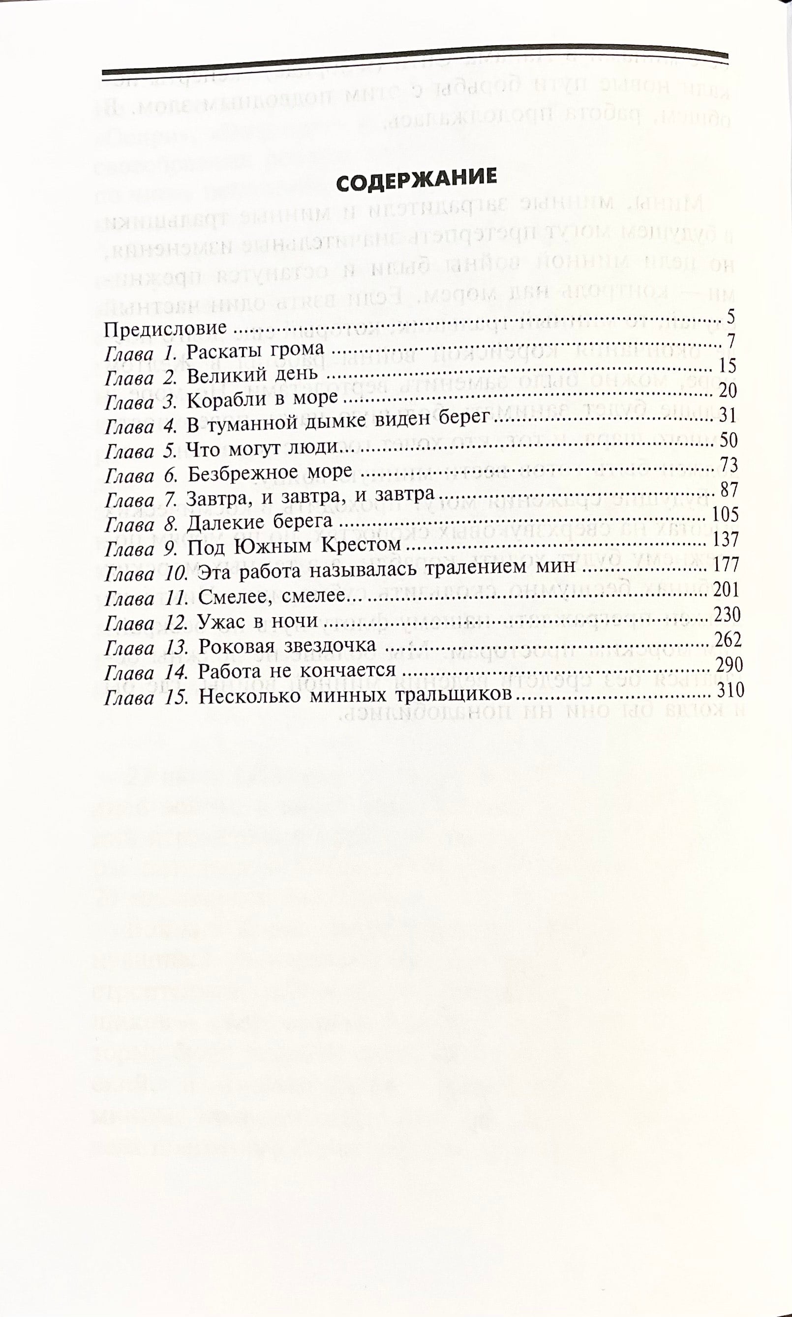 Эта книга — рассказ о минной войне на море — наименее известной стороне периода Второй мировой войны. Автор правдиво повествует о суровых буднях моряков минных тральщиков и заградителей. Об их ежедневных подвигах и о трудном пути к победе мало кто знал и говорил. Экипажам небольших кораблей приходилось воевать в опасных водах, при плохой погоде, под беспрерывными атаками противника. Эти люди скромно делали свое дело, не ожидая ни славы, ни почестей.