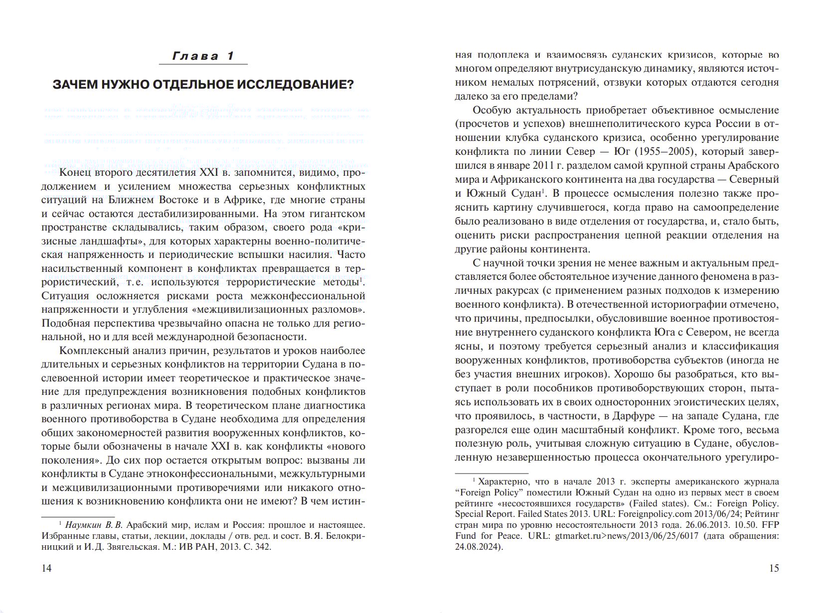 В книге подробно рассмотрены два крупнейших конфликта: противостояние Севера и Юга (1955–2005), завершившееся подписанием Всеобъемлющего мирного соглашения и последующим разделом страны в 2011 г., и кризис в Дарфуре (2003–2020), ставший одним из самых трагических эпизодов африканской новейшей истории, а также осмысливается российское участие в их урегулировании. Существенное место отведено миротворческой деятельности ООН, эффективность которой оценивается критически и с позиций практических уроков.