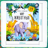 Книжка с окошками «Мир животных» — путеводитель для любознательных малышей, которые готовы отправиться в настоящее путешествие по земному шару. На страницах книги они смогут поближе познакомиться с животными со всех уголков планеты. Внутри — 12 красочных страниц и 29 окошек разной формы, открывая которые дети получат массу интересной и полезной информации о том, как выглядят разные звери и птицы, где они живут и какой ведут образ жизни. В каждом окошке дополнительный факт. Книга сделана из плотного картона с ламинированной обложкой. Окошки расположены на каждой странице.