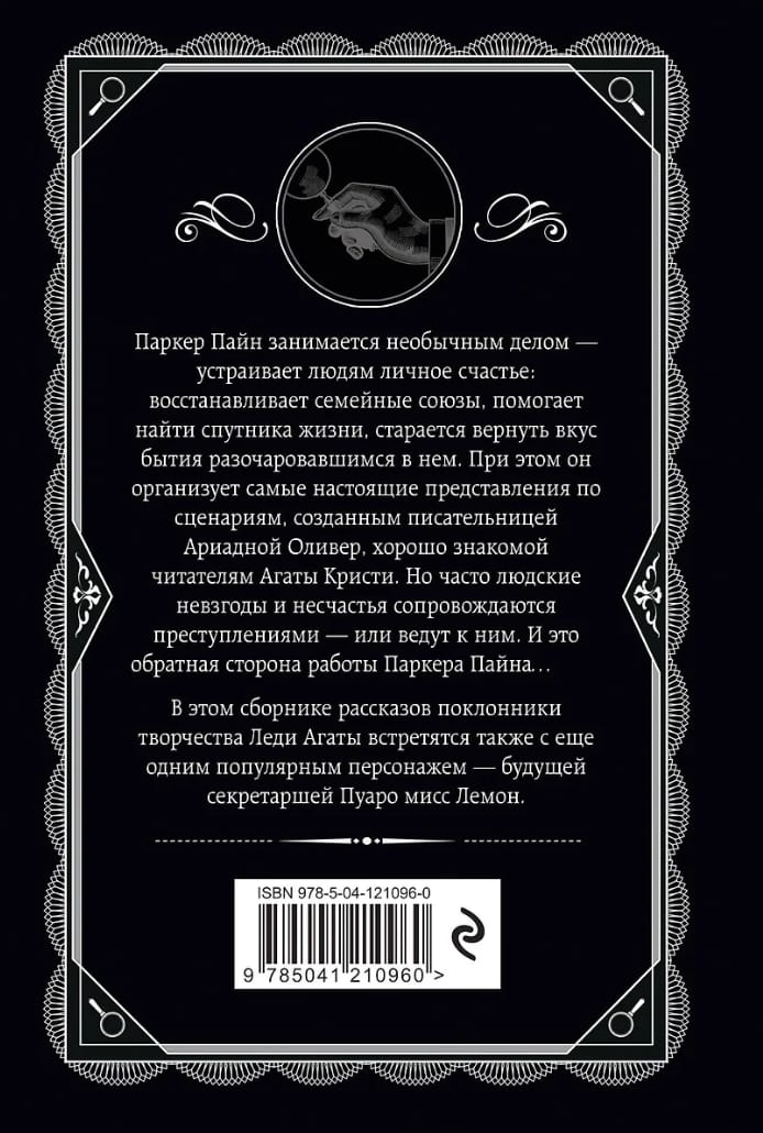 Паркер Пайн занимается необычным делом – устраивает людям личное счастье: восстанавливает семейные союзы, помогает найти спутника жизни, старается вернуть вкус бытия разочаровавшимся в нем. При этом он организует самые настоящие представления по сценариям, созданным писательницей Ариадной Оливер, хорошо знакомой читателям Агаты Кристи. Но часто людские невзгоды и несчастья сопровождаются преступлениями – или ведут к ним. И это обратная сторона работы Паркера Пайна…
