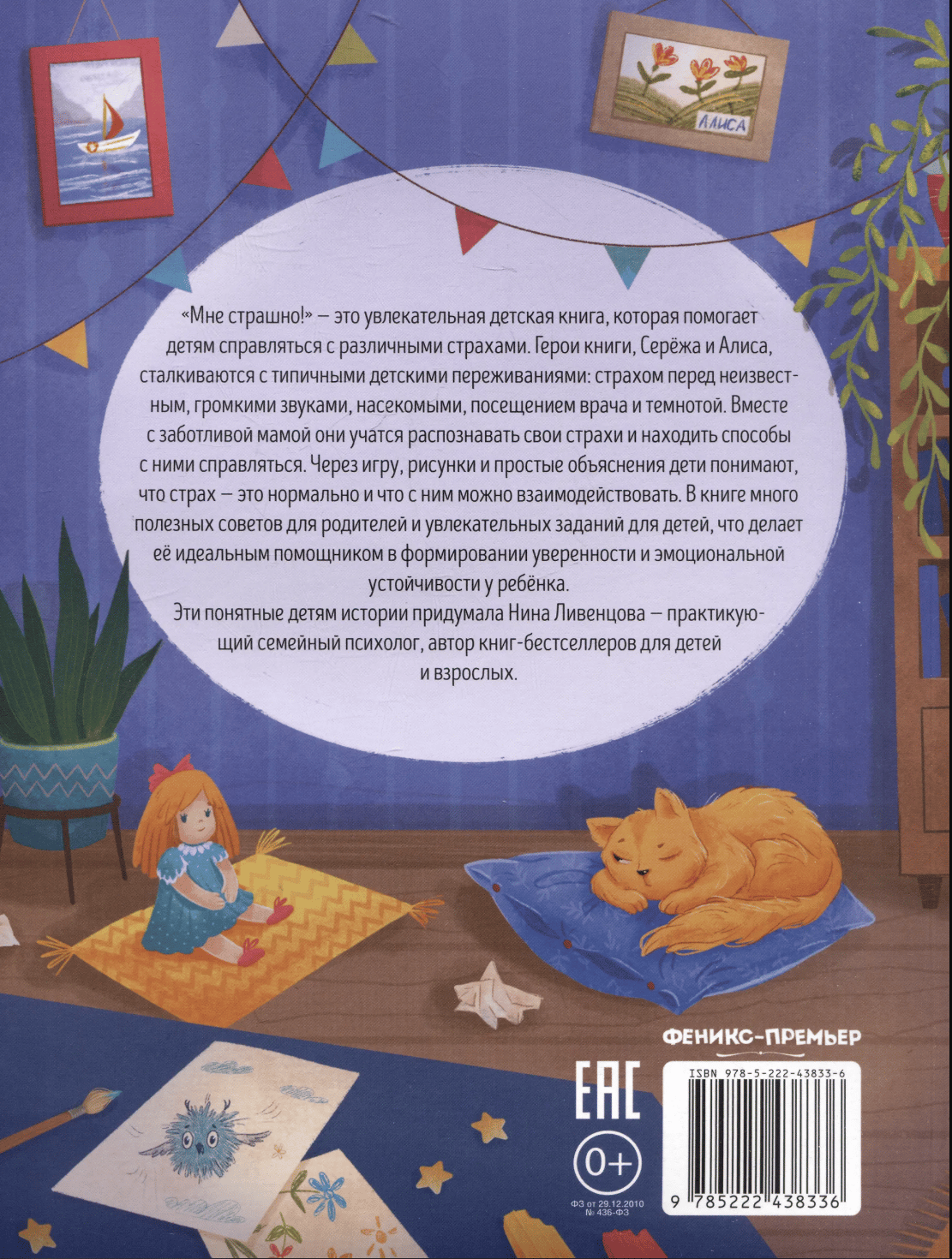 «Мне страшно!» - это увлекательная детская книга, которая помогает детям справляться с различными страхами. Герои книги, Серёжа и Алиса, сталкиваются с типичными детскими переживаниями: страхом перед неизвестным, громкими звуками, насекомыми, посещением врача и темнотой. Вместе с заботливой мамой они учатся распознавать свои страхи и находить способы с ними справляться. Через игру, рисунки и простые объяснения дети понимают, что страх - это нормально и что с ним можно взаимодействовать. В книге много полезных советов для родителей и увлекательных заданий для детей, что делает её идеальным помощником в формировании уверенности и эмоциональной устойчивости у ребёнка.