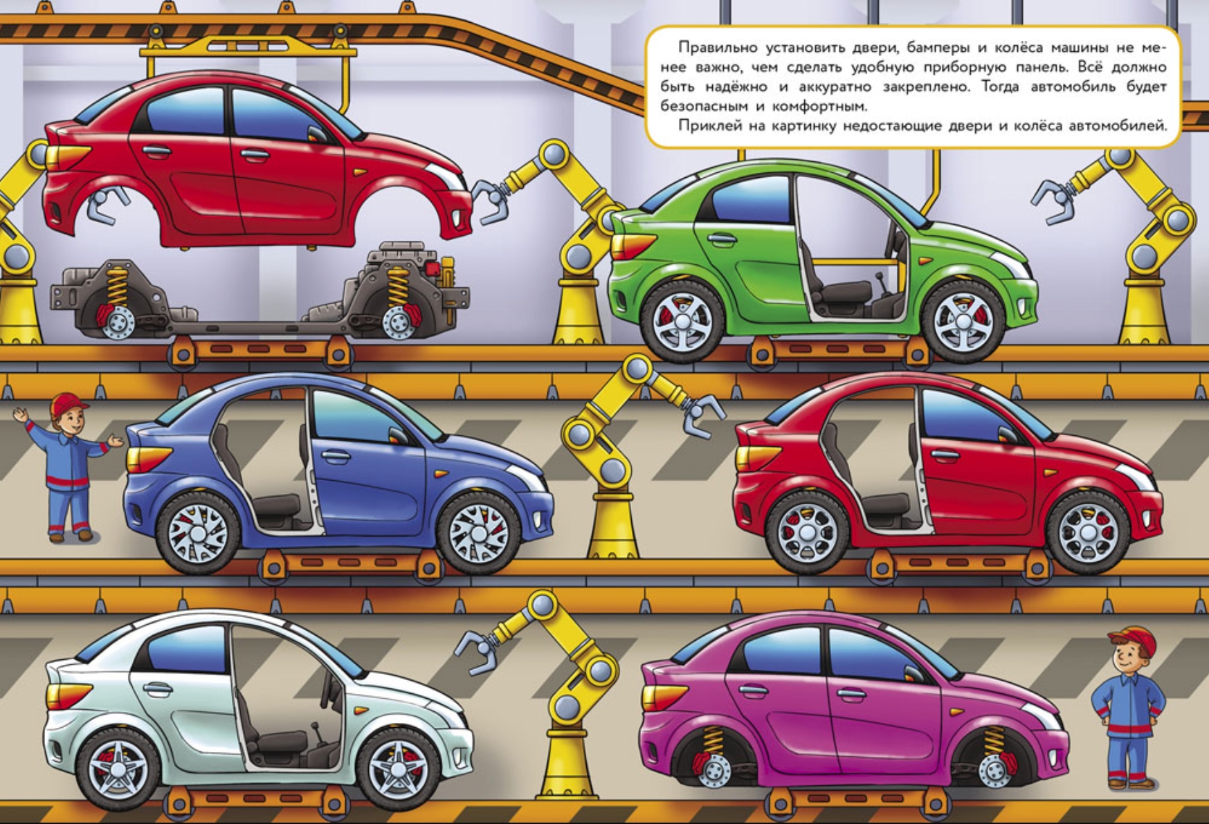 Какие специалисты трудятся над созданием машин? Как устроена приборная панель? Что такое испытательный полигон для автомобилей? Играя с этой книжкой, ваш малыш узнает ответы на эти и другие вопросы о машинах. А многоразовые наклейки сделают игру ещё увлекательнее!