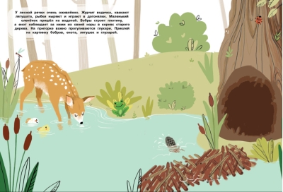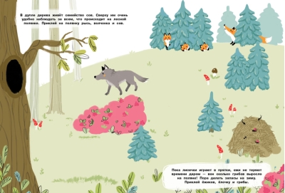 В лесу так много интересного! В норках и берлогах, в дуплах и гнёздах, в хатках и даже просто под кустом живут лесные звери и птицы. Давай вместе познакомимся с ними. Листай странички книги и приклеивай картинки. А можешь придумать свои истории, ведь наклейки в книге многоразовые, и можно приклеивать их снова и снова!