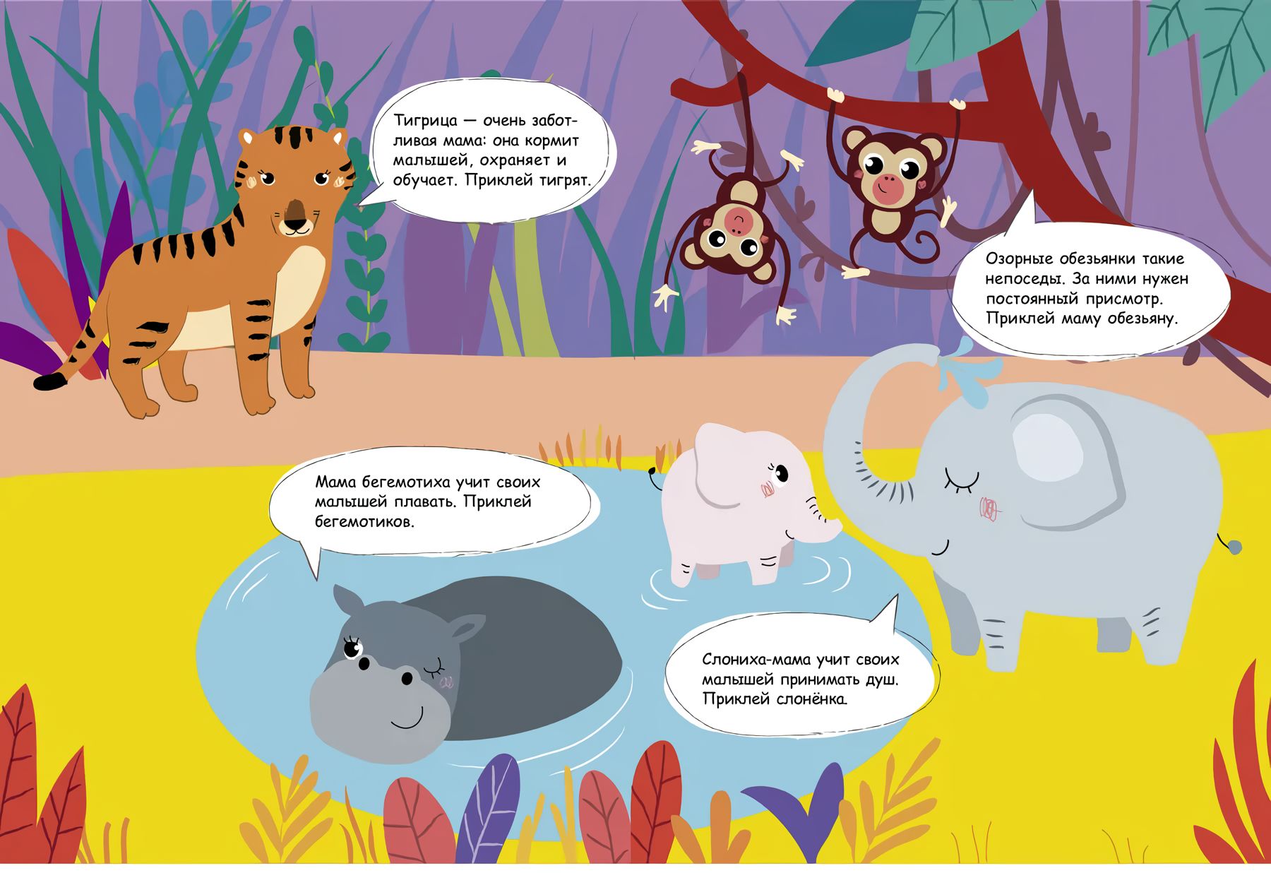 Ваш малыш ещё не знает, что у зверей тоже есть Мамы и малыши? Тогда эта книжка как раз для него. Мы побываем в деревне и в лесу, в жарких странах и во льдах и познакомимся с животными и их детёнышами. А наши наклейки помогут нам в этом!