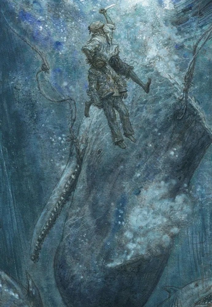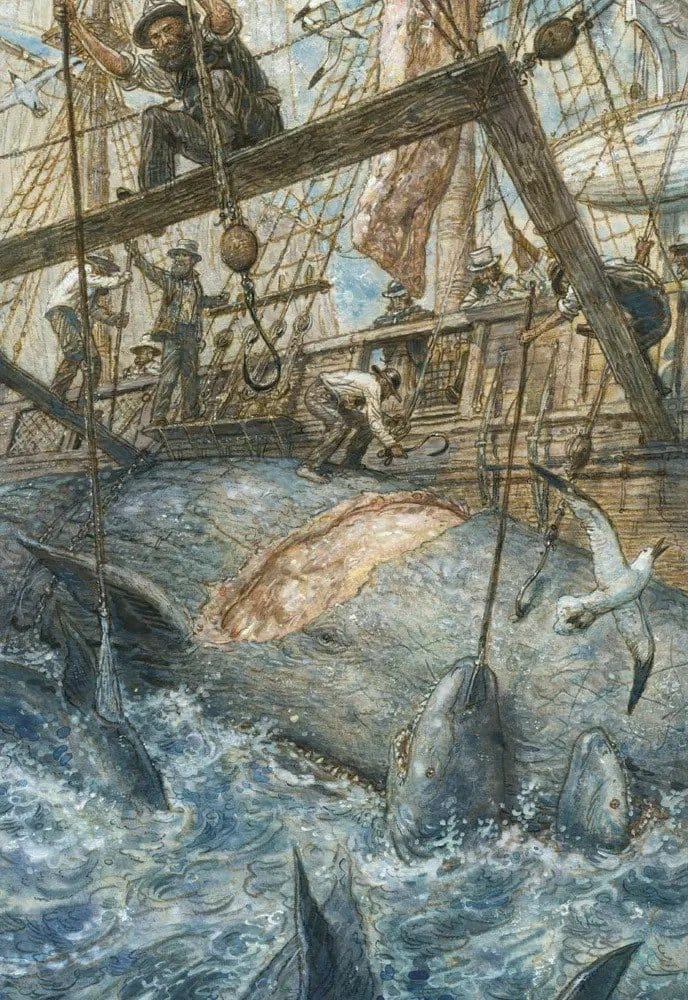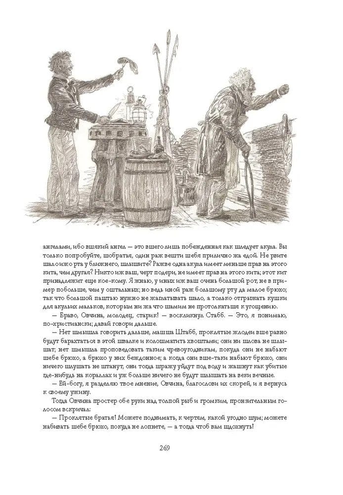 Китобойное судно «Пекод» отправляется в дальнее плаванье. На его борту пестрая команда моряков разных рас и национальностей. Но морским охотникам предстоит узнать, что главная цель капитана их судна Ахава вовсе не китовый жир и спермацетовое масло. Его сердце пылает огнем мщения. Он охотится за легендарным и опасным китом-альбиносом Моби Диком, лишившим Ахава ноги в одном из предыдущих плаваний. Герман Мелвилл, имевший опыт китобоя, подробно и со знанием дела описывает жизнь охотников за китами. Со страстью любознательного первооткрывателя он рассказывает об океане и его обитателях. Но за живыми деталями и характерами вырастает трагедия библейского масштаба, где перед героями романа встают вопросы самого высокого порядка: о жизни и смерти, добре и зле. Иллюстрации Антона Ломаева уже украсили издания «Моби Дика» на английском, французском, китайском, литовском и русском языках. Специально для этой книги, вышедшей в издательстве «Лорета», вдобавок к прежним иллюстрациям художник сделал сорок новых рисунков, которые помогут читателю погрузиться в волнующий мир великого романа.