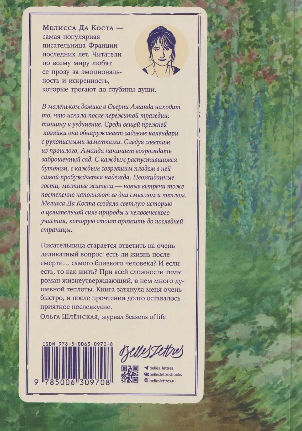 В маленьком домике в Оверни, вдали от городской суеты, Аманда находит то, что искала после пережитой трагедии: тишину и уединение. Среди вещей прежней хозяйки, мадам Юг, она обнаруживает садовые календари с рукописными заметками. Следуя советам из прошлого, Аманда начинает возрождать заброшенный сад: засеивает грядки, выращивает цветы, собирает первый урожай яблок. С каждым распустившимся бутоном, с каждым созревшим плодом в ней самой пробуждается надежда. Неожиданные гости, местные жители — новые встречи тоже постепенно наполняют ее дни смыслом и теплом. Мелисса Да Коста, чей неповторимый голос покорил читателей во многих странах, создала светлую историю о целительной силе природы и человеческого участия, которую стоит прожить до последней страницы.