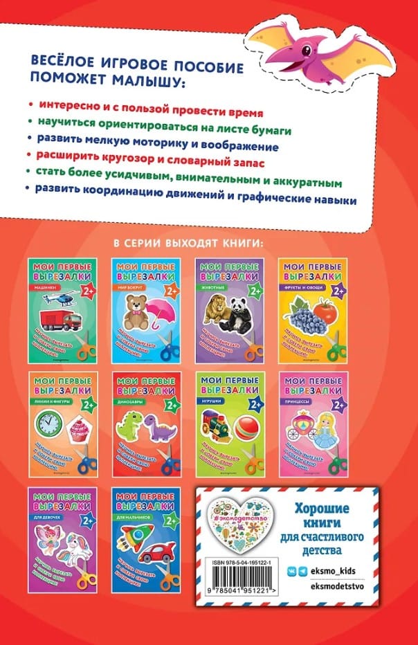 Увлекательная красочная книга-вырезалка для малышей поможет расширить кругозор ребенка, развить мелкую моторику, внимание, воображение, речь, увеличить словарный запас. Заниматься нужно понемногу, постепенно приучая малыша правильно держать ножницы и ориентироваться на листе.