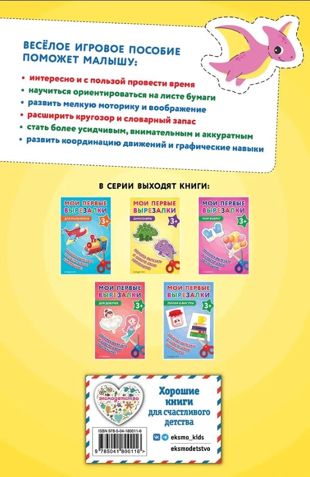 Увлекательная красочная книга-вырезалка для малышей поможет расширить кругозор ребенка, развить мелкую моторику, внимание, воображение, речь, увеличить словарный запас. Заниматься нужно понемногу, постепенно приучая малыша правильно держать ножницы и ориентироваться на листе.