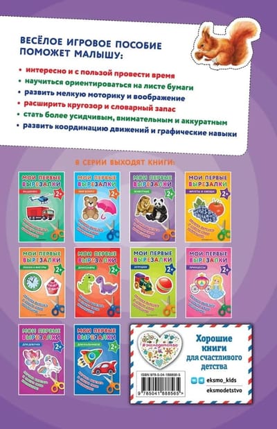 Увлекательная красочная книга-вырезалка для малышей поможет расширить кругозор ребенка, развить мелкую моторику, внимание, воображение, речь, увеличить словарный запас. Начинать заниматься можно с 2-х лет, постепенно приучая малыша правильно держать ножницы и ориентироваться на листе. Удобный формат, плотная бумага, пунктирные линии сделают работу с книгой максимально удобной для ребенка.