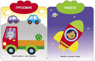 Книжка с многоразовыми наклейками. В игровой форме книжки учат ребенка запоминать цвета и правильно пользоваться наклейками.
