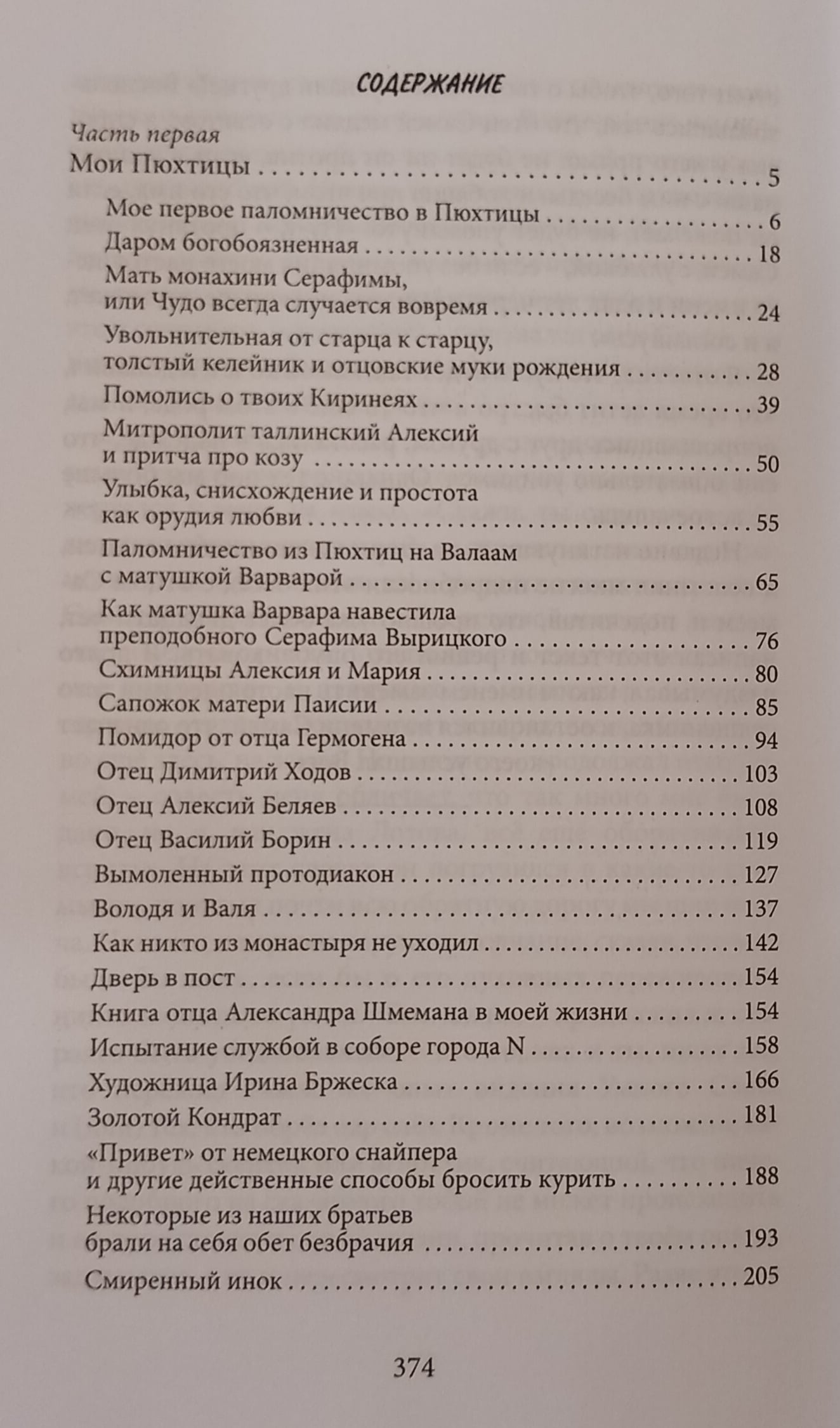 В цикле рассказов «Мои Пюхтицы» автор попытался передать свои впечатления об атмосфере и людях очень важного в его биографии и дорого ему Пюхтицкого Успенского женского монастыря.