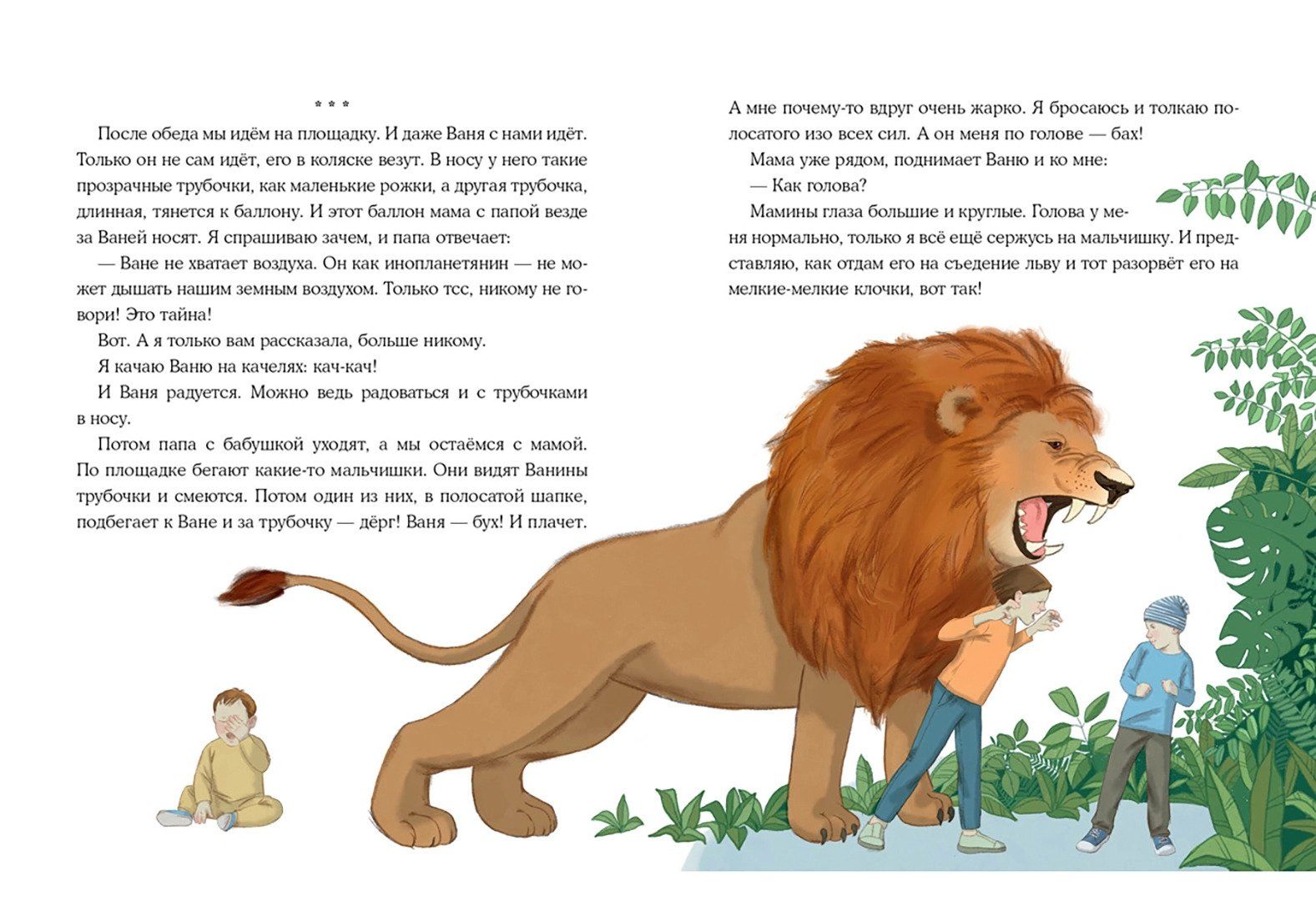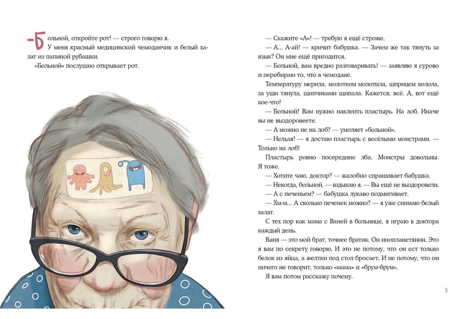 Однажды в жизни Евы и её младшего братика Вани наступают невесёлые перемены: Ваня вместе с мамой оказывается в больнице. Теперь девочку из детского сада забирает бабушка, а папа проводит в больнице всё время после работы, так что Ева его почти не видит. Так проходит много-много дней. Ева часто навещает брата и очень ждёт его дома. Когда же Ваня наконец возвращается, он всё ещё нуждается в помощи. Но Ева точно знает, что ей с братом никогда не будет скучно, ведь он - инопланетянин! Трогательная история о том, что доброты и заботы не бывает слишком много.