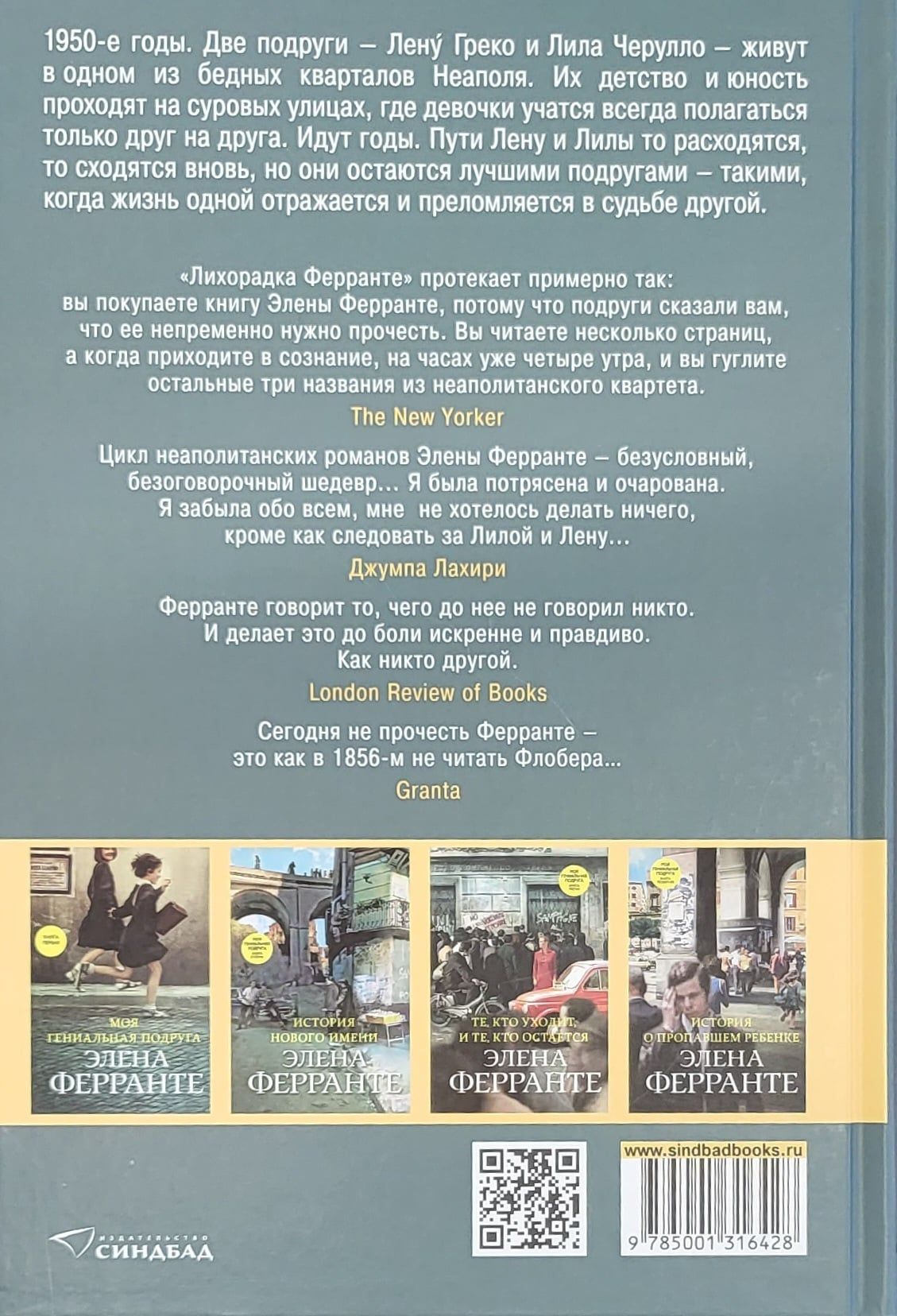 "Гениальная подруга" - первый роман из цикла "Неаполитанский квартет". Это рассказ о детстве двух девчонок из бедного неаполитанского квартала и начале дружбы длиною в жизнь. Первый раз пути девочек разойдутся еще после начальной школы. Семейные обстоятельства заставят одну из них бросить учебу и пойти работать в сапожную мастерскую отца. На протяжении жизни незримое соперничество, сопровождающее настоящую близость, будет разводить их по разным дорогам. Каждая из подруг будет стремиться стать лучшей, каждая познает и успех, и разочарование, обеих ожидают большие испытания и трагические события. Но прочная нить детской дружбы, которая порой связывает людей даже вопреки их воле, будет снова и снова заставлять Лилу и Элену возвращаться друг к другу.
