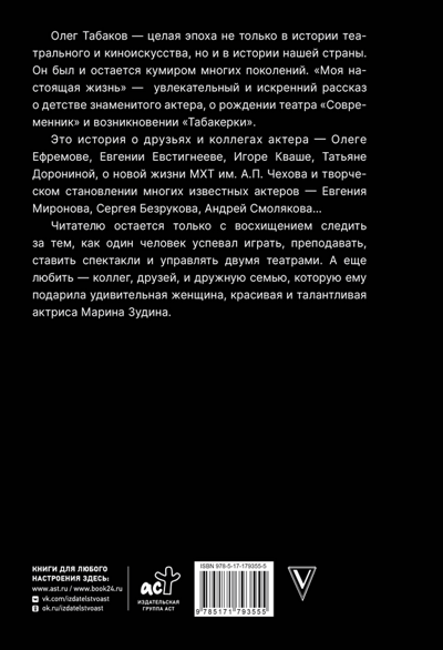 «Моя настоящая жизнь» — это увлекательный, полный интереснейших подробностей рассказ знаменитого актера о своем саратовском детстве, о переезде в Москву и учебе в Школе-студии МХАТ, о рождении театра «Современник», о возникновении «Табакерки», ее постановках, о жизни МХТ им. А.П. Чехова, о сотрудничестве с лучшими режиссерами, о тех, с кем дружил и работал актер (а среди них Г. Волчек, О. Ефремов, Е. Евстигнеев, И. Кваша, Т. Доронина, С. Безруков, В. Машков), и еще много о чем.