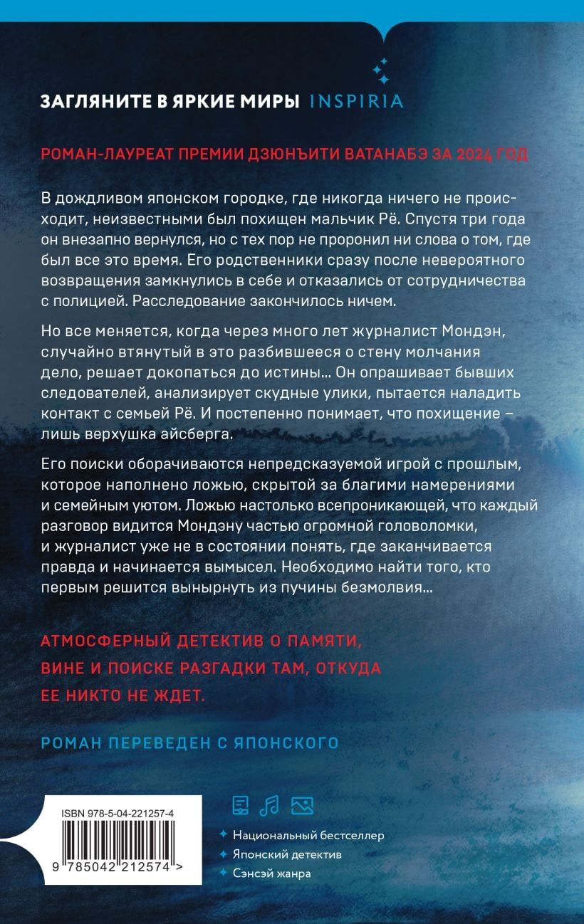 Он опрашивает бывших следователей, анализирует скудные улики, пытается наладить контакт с семьей Рё. И постепенно понимает, что похищение — лишь верхушка айсберга. Его поиски оборачиваются непредсказуемой игрой с прошлым, которое наполнено ложью, скрытой за благими намерениями и семейным уютом. Ложью настолько всепроникающей, что каждый разговор видится Мондэну частью огромной головоломки — и журналист уже не в состоянии понять, где заканчивается правда и начинается вымысел. Необходимо найти того, кто первым решится вынырнуть из пучины безмолвия…