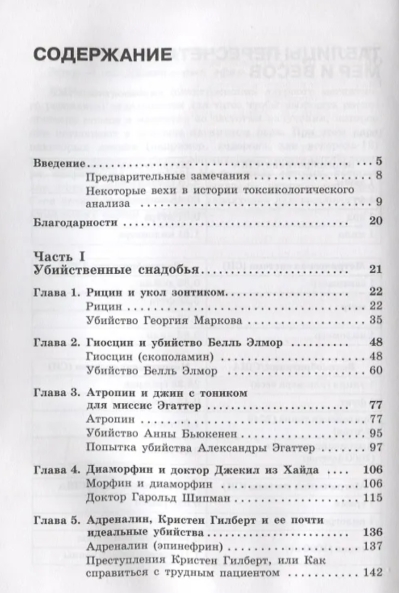 Книга известного английского ученого и популяризатора науки Джона Эмсли — о знаменитых преступлениях, преступниках и их жертвах, однако это не просто сборник детективных сюжетов. Все истории связаны с отравлениями, а потому главный герой книги — химия. Первая часть посвящена веществам природным, а вторая — ядам, придуманным человеком. Рассказывается об их свойствах, истории открытия, использования в прошлом и настоящем, в медицине и области криминала. На страницах книги оживают исторические персонажи, такие как Клеопатра, известный отравитель папа римский Александр VI (Борджиа), князь Юсупов, пытавшийся отравить Распутина, а также персонажи литературные, например, отравленный отец Гамлета, Гарри Поттер. Заканчивается книга историей Александра Литвиненко, случившейся уже в наши дни.