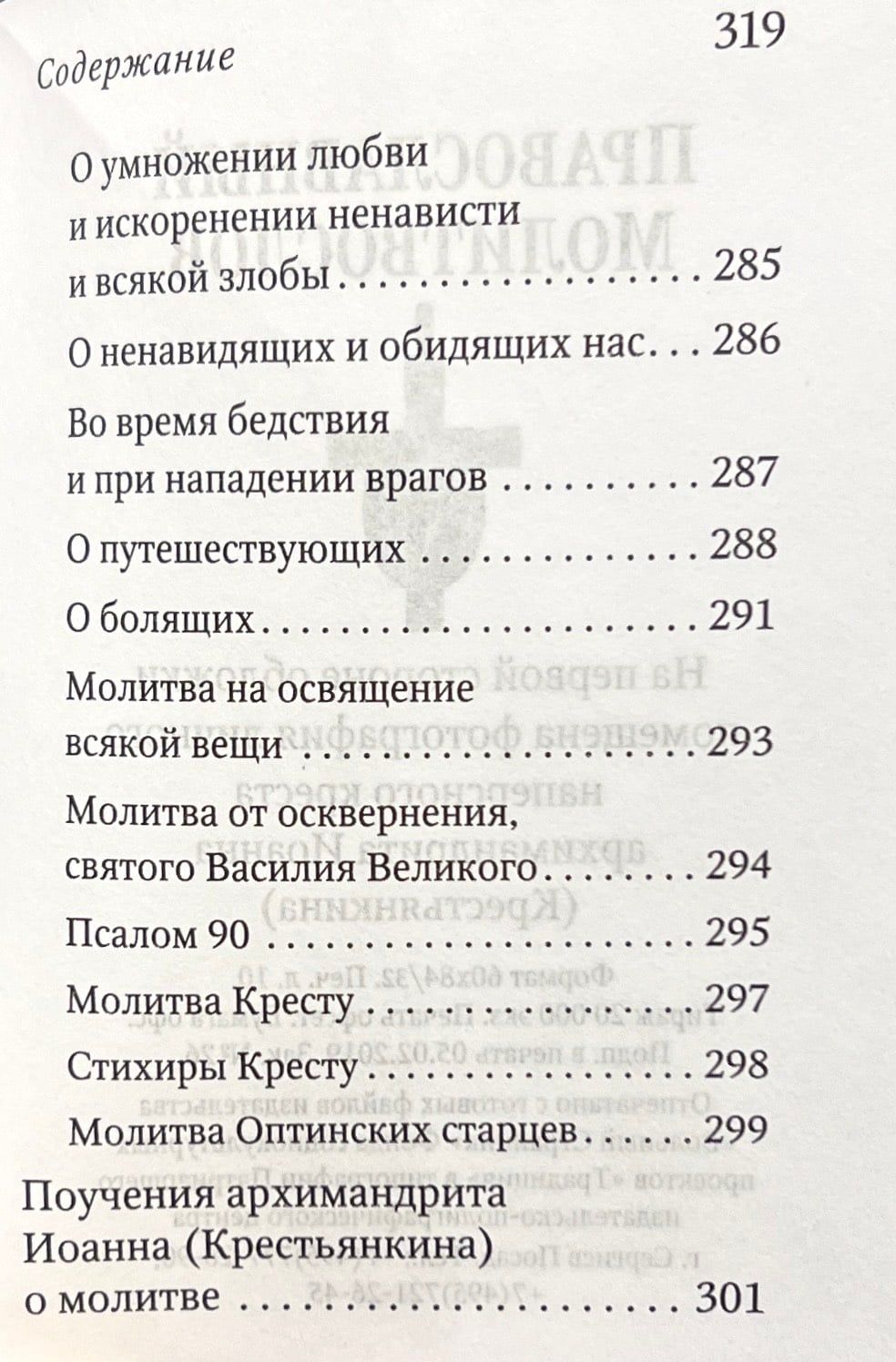 В настоящем издании удобного карманного формата молитвослов традиционного содержания дополнен молитвословиями, читаемыми в различных обстоятельствах, а также поучениями архимандрита Иоанна (Крестьянкина) о молитве. Каноны совмещенные.