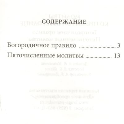 Сборник «Молитвы ко Пресвятой Богородице» содержит описание нескольких вариантов исполнения Богородичного правила, а также Пяточисленные молитвы - творение святителя Димитрия Ростовского.