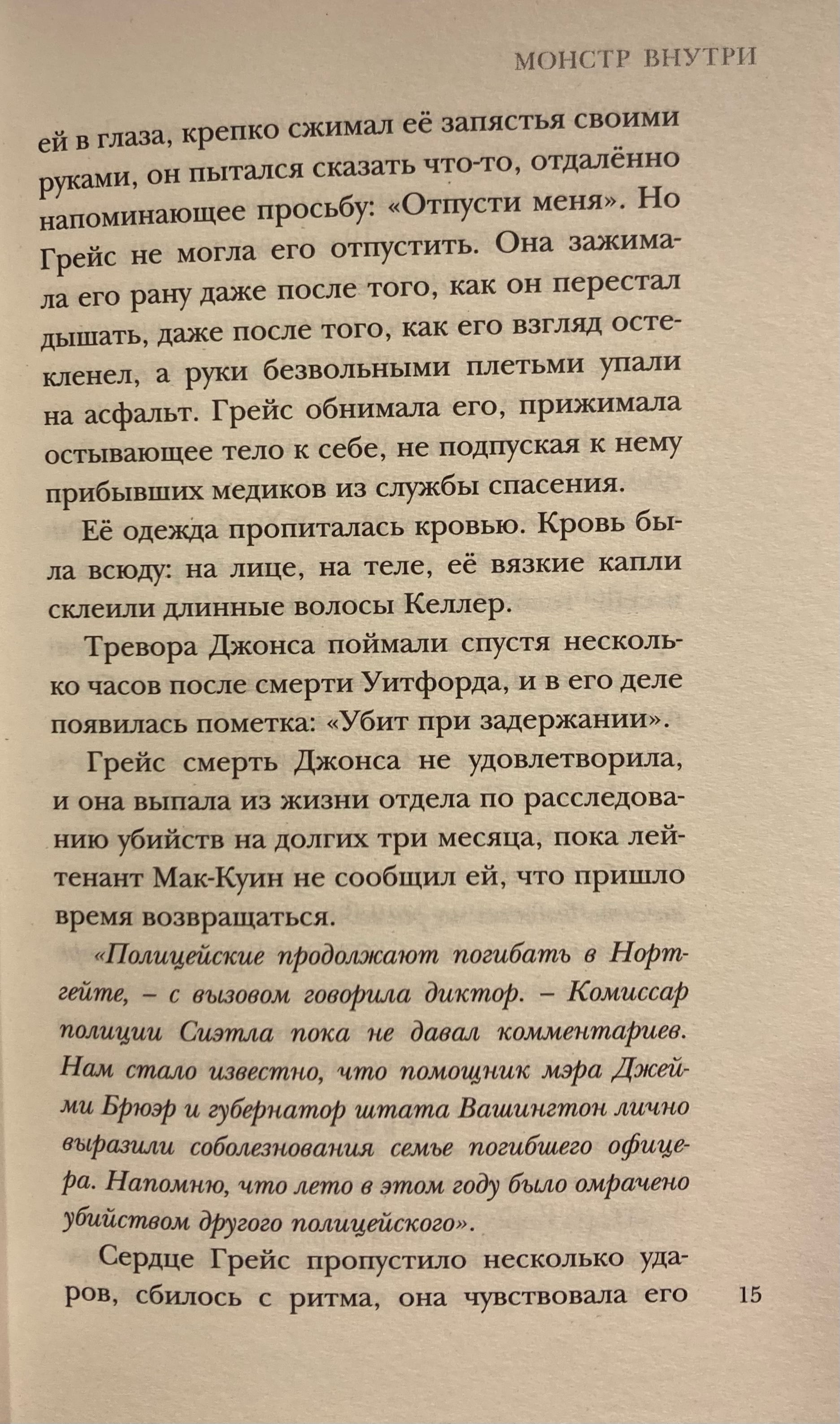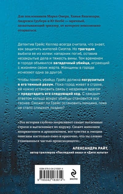 Детектив Грейс Келлер всегда считала, что знает, как защитить жителей Сиэтла. Но недавняя трагедия выбила ее из колеи: ее напарник погиб, оставив за собой незакрытые дела и тяжесть вины.