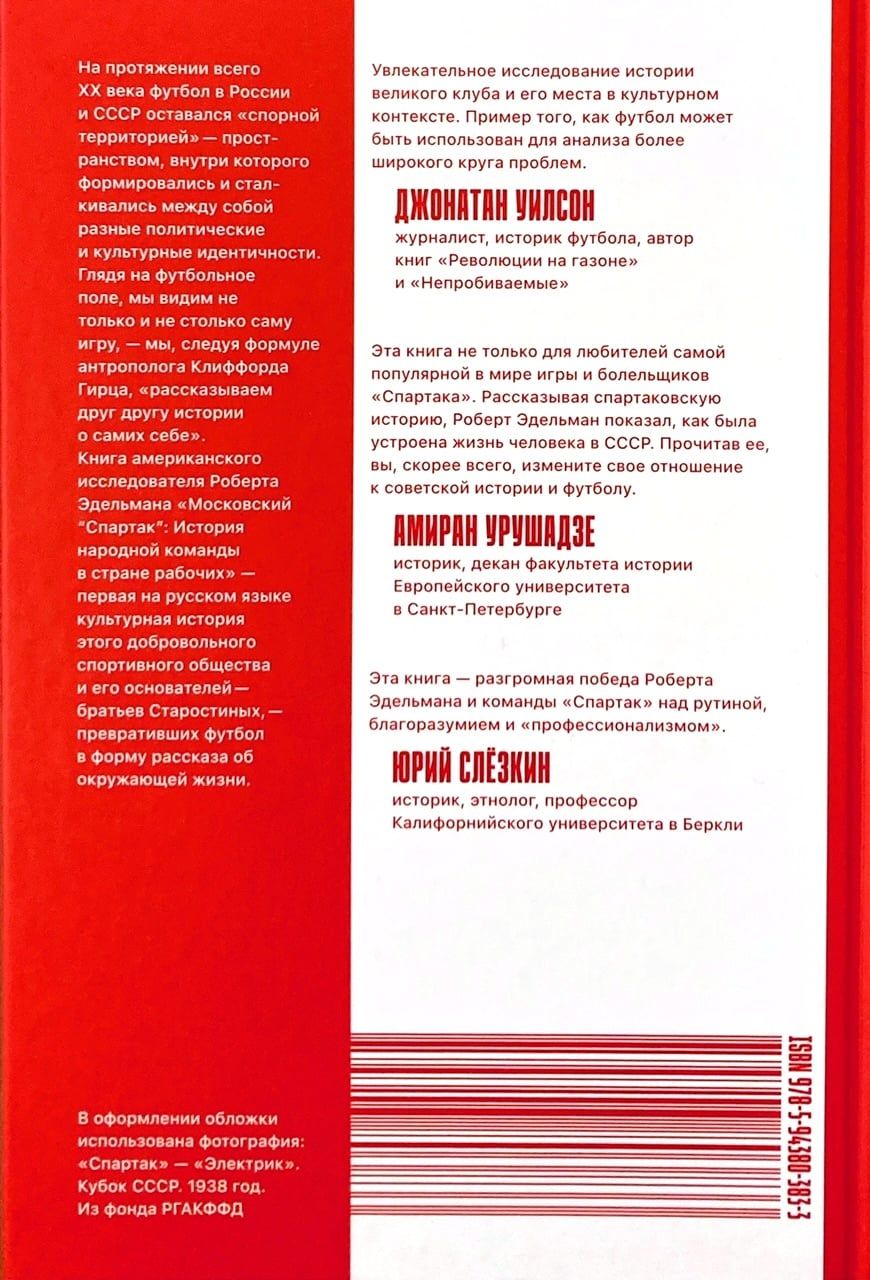 «Московский «Спартак» Роберта Эдельмана — это история советского общества, рассказанная на материале создания и хроники существования самой популярной в России футбольной команды. Каждый период в летописи отечественного футбола связывается с политическим и культурным контекстом: от появления футбола в 1890-е годы до распада СССР в 1991-м.